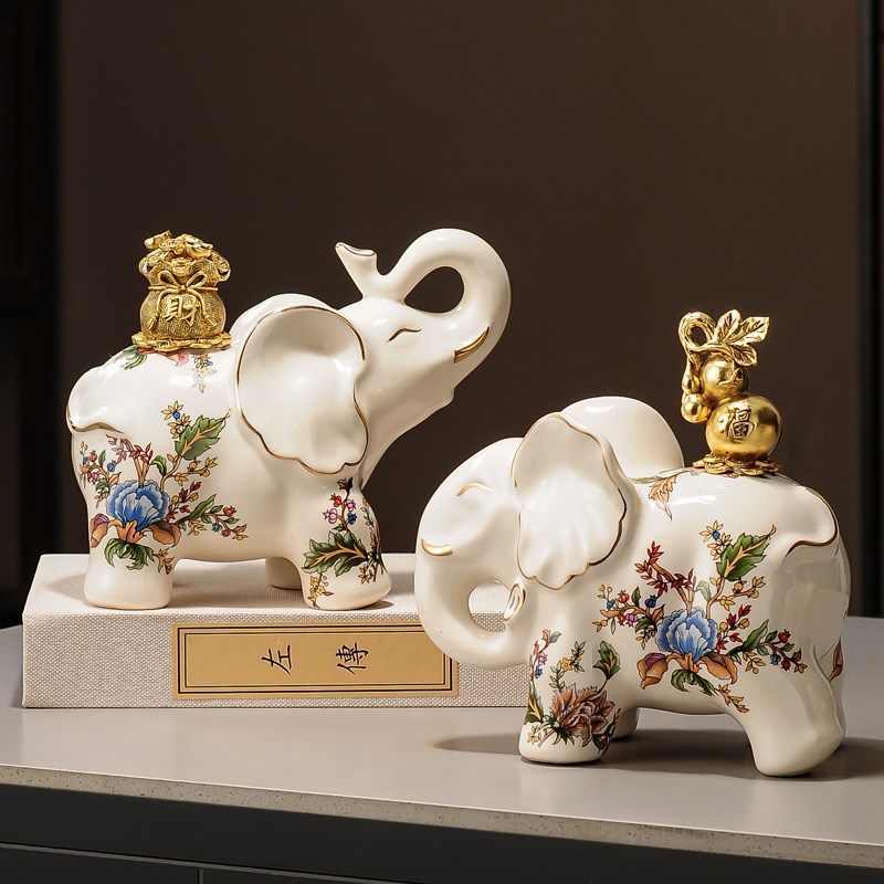 家居装饰品陶瓷大象m摆件电视柜酒柜客厅高档旺宅葫芦裂纹釉工艺
