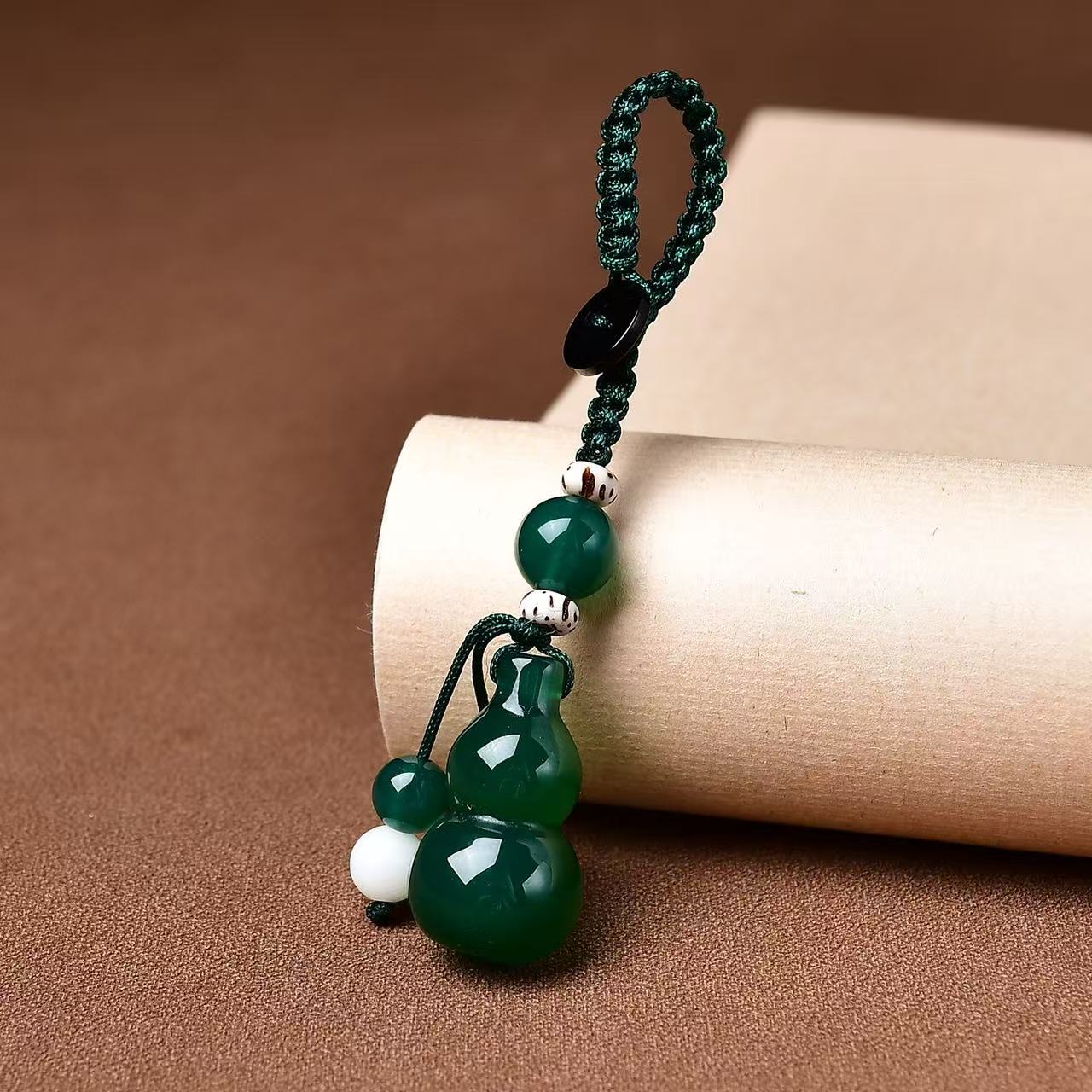 悦卜高档玛瑙玉石葫芦福禄汽车钥匙扣挂件简约挂饰创意小礼品