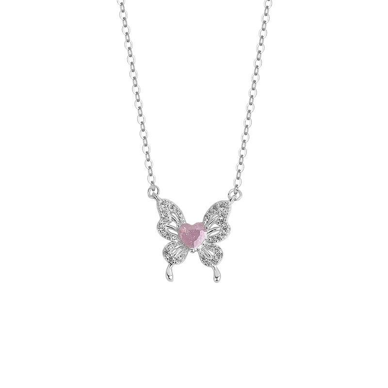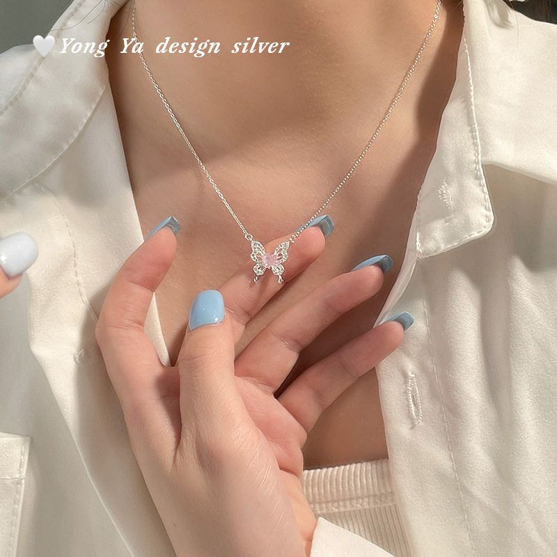 S999足银蝴蝶锆石项链女清新优雅ins风甜美锁骨链代发ins风爆款