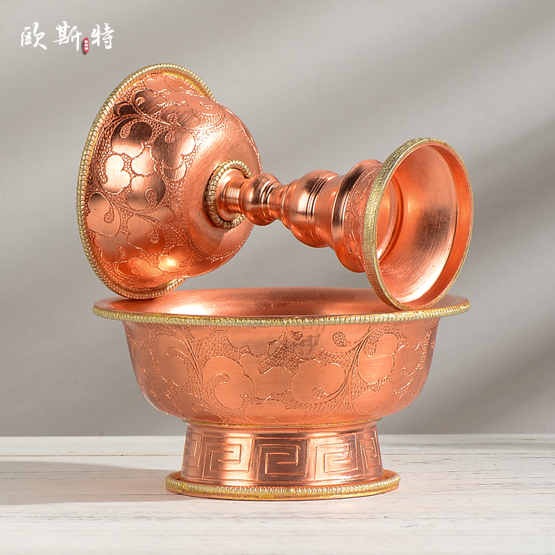 铜护杯法杯 家用净水杯 红铜西藏家用财神杯客厅桌面八吉祥摆件