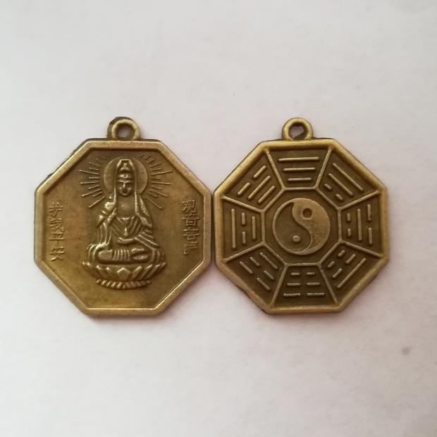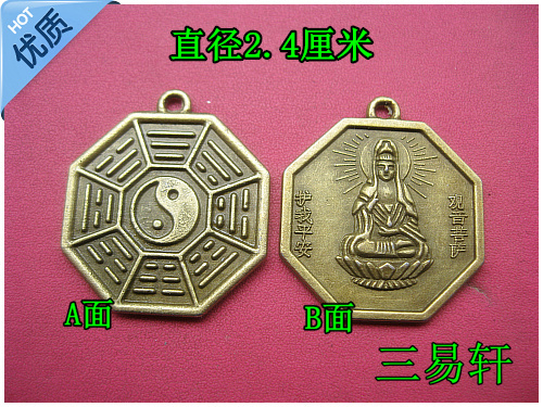 仿古铜钱/八卦镜 优质合金小八卦观音菩萨铜钱吊坠牌直径 2.4厘米