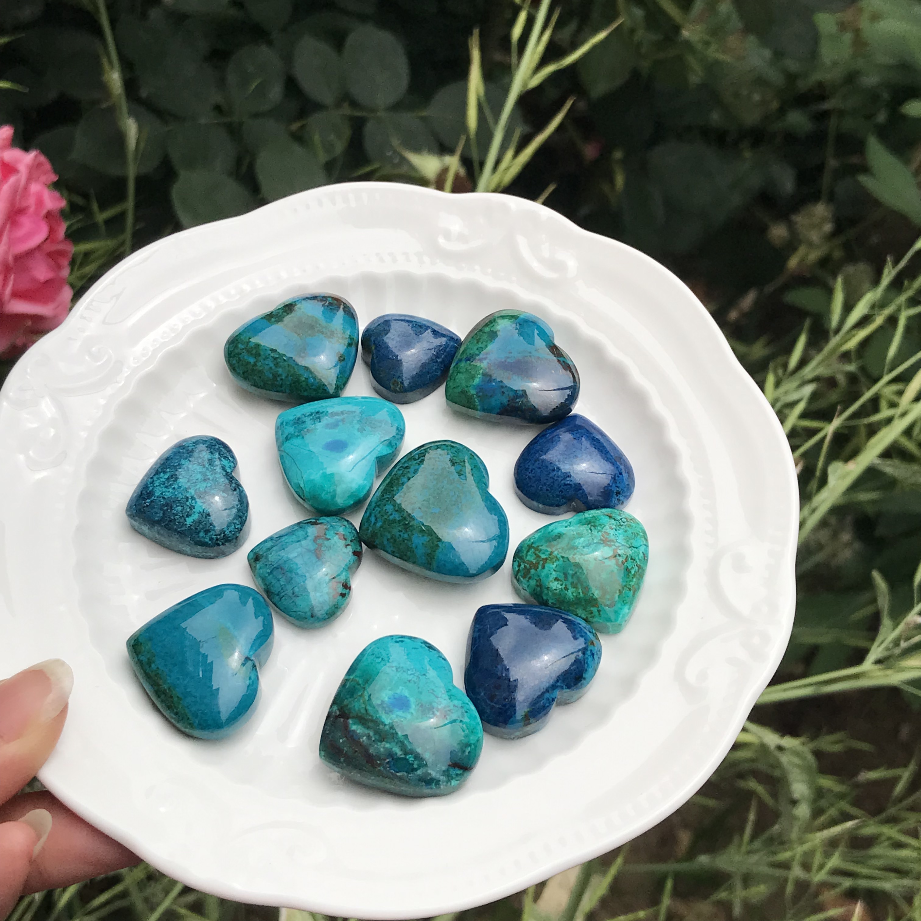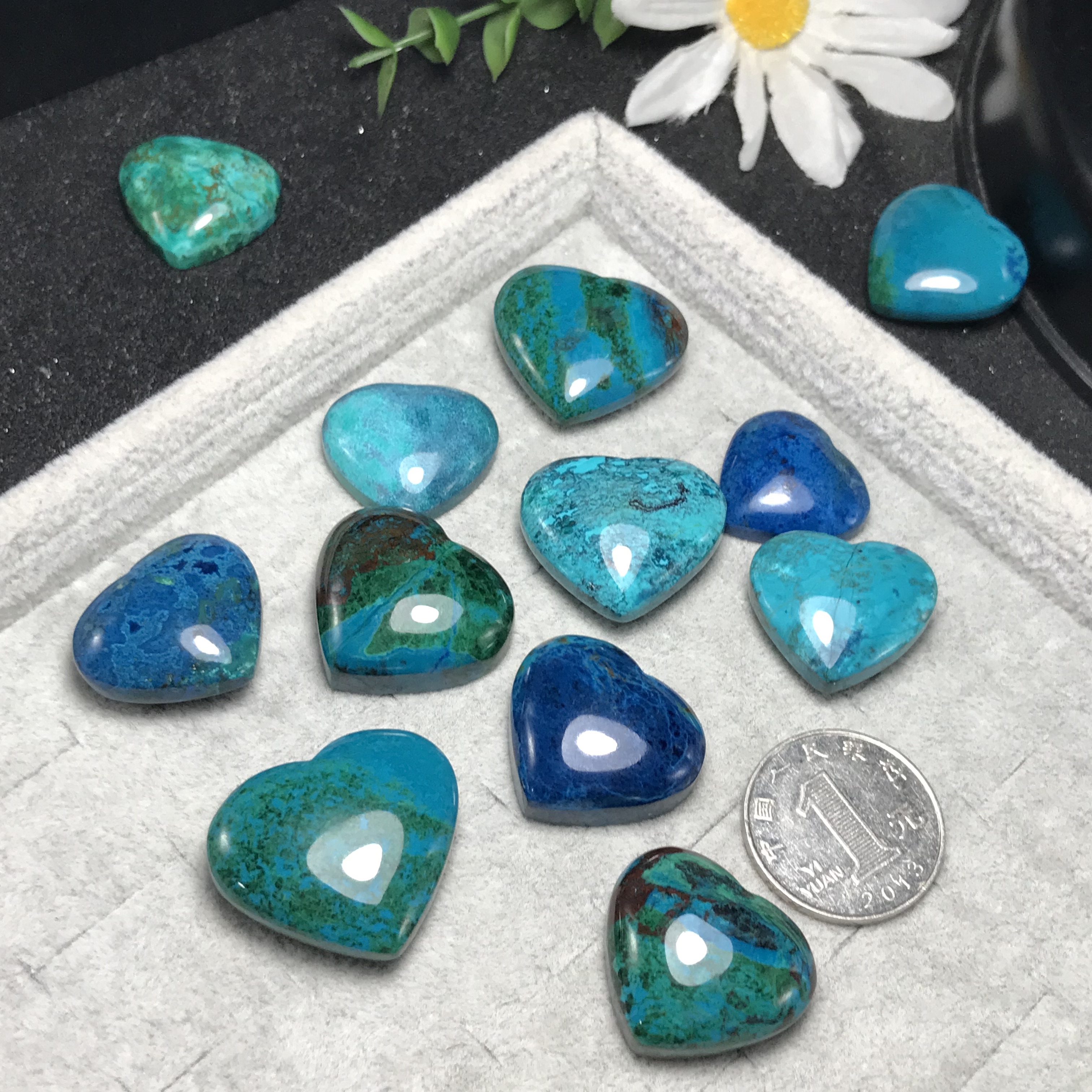 爱心!天然凤凰石双/单面裸石硅孔雀石镶嵌吊坠素面民族风打孔备注