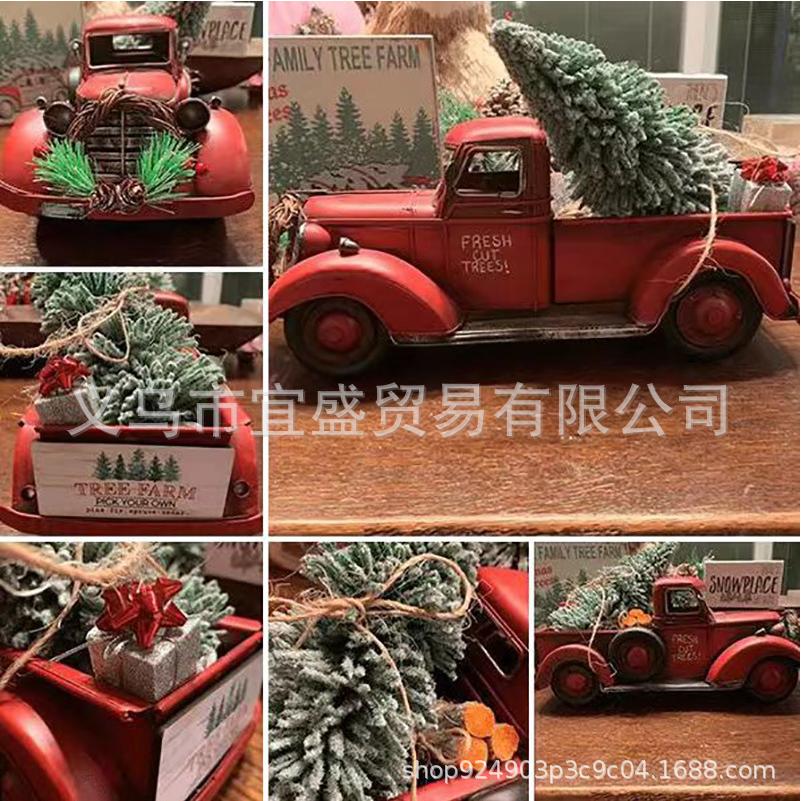 圣诞节卡丁车红色圣诞树拉货led灯闪烁圣诞摆件氛围树脂家居