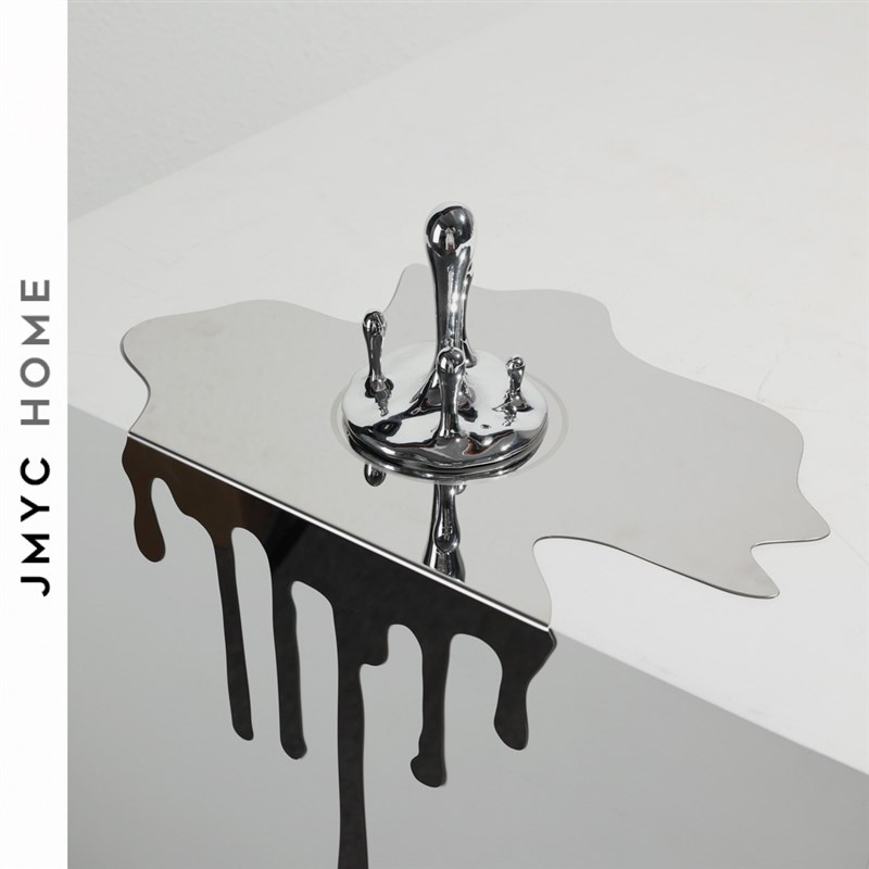 现代简约银色金属流淌水s滴托盘摆件客厅电视柜挂件样板房软装饰