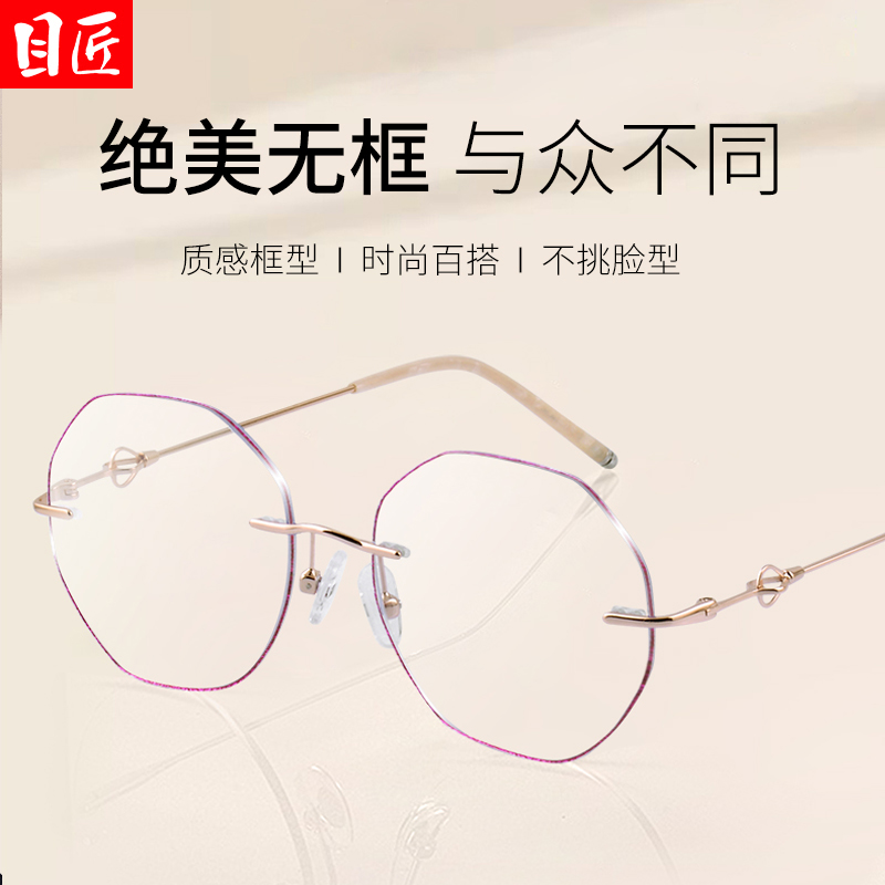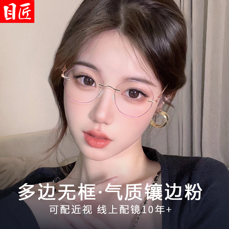 多边形闪粉无框近视眼镜框女款可配度数纯欲满天星女式无边框镜架