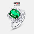 豪华培育祖母绿戒指珠宝彩宝女S925银18K金镶嵌满钻手饰红宝石