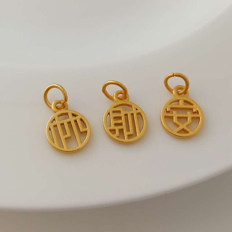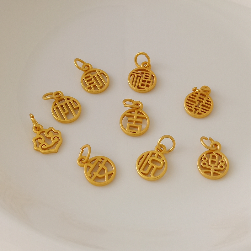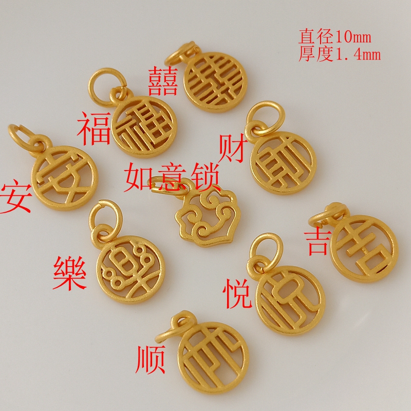 18K铜包金保色沙金安福囍如意锁财顺悦吉古法金吊坠吊饰手工DIY