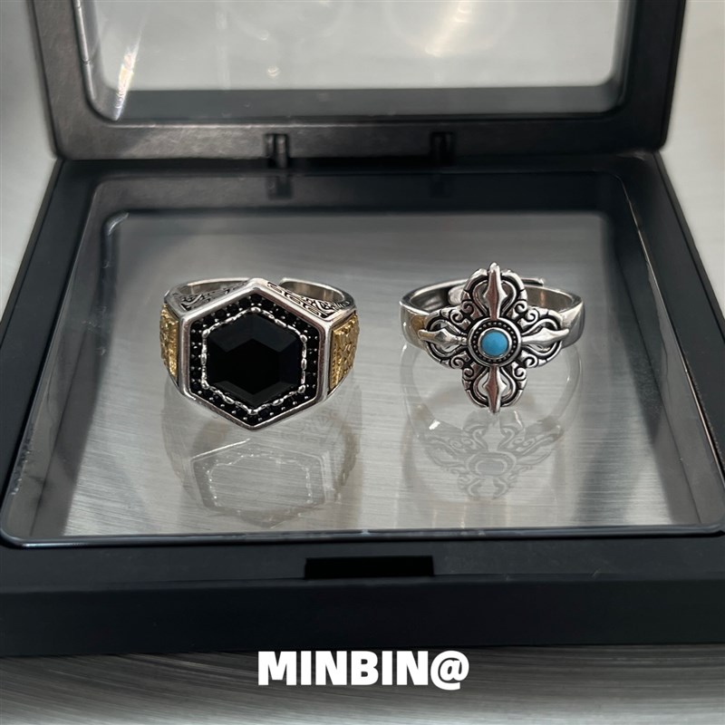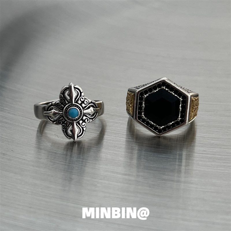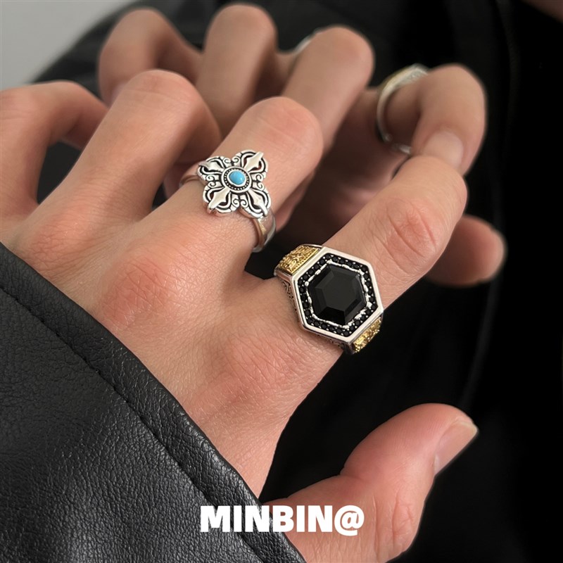 复古黑玛瑙绿松石十字p架戒指男士高级感小众设计个性食指戒指环