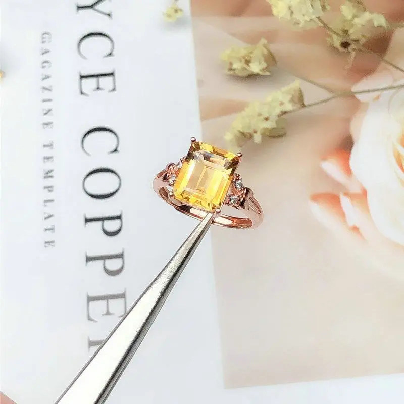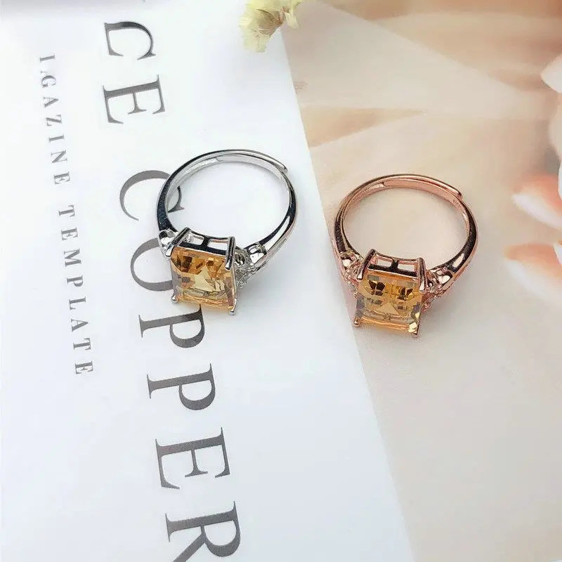 新款黄水晶戒指女s925纯银日韩版时尚个性高级公主方开口指环招财