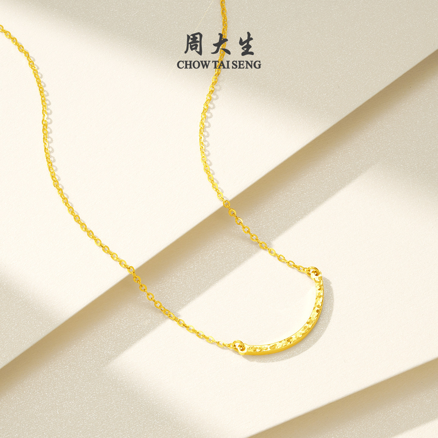 圣诞礼物周大生黄金项链女足金碎碎冰锁骨套链弯管微笑吊坠送女生