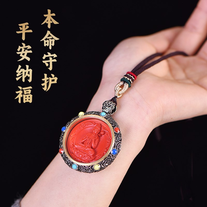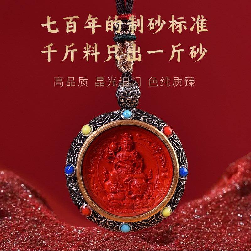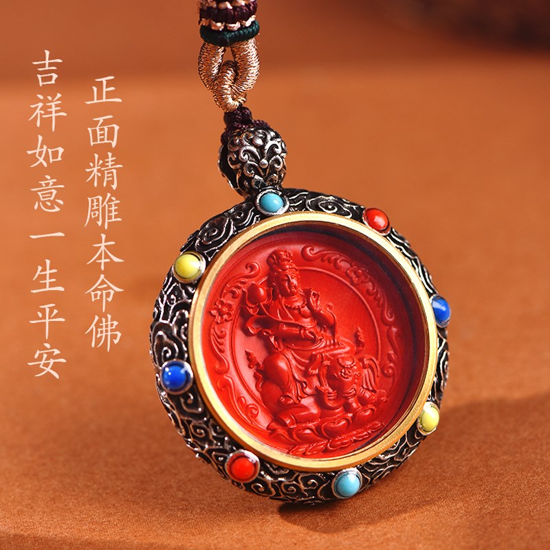 朱砂本命佛吊坠本命年虚空藏普贤菩萨挂件男女保真红朱砂项链礼物