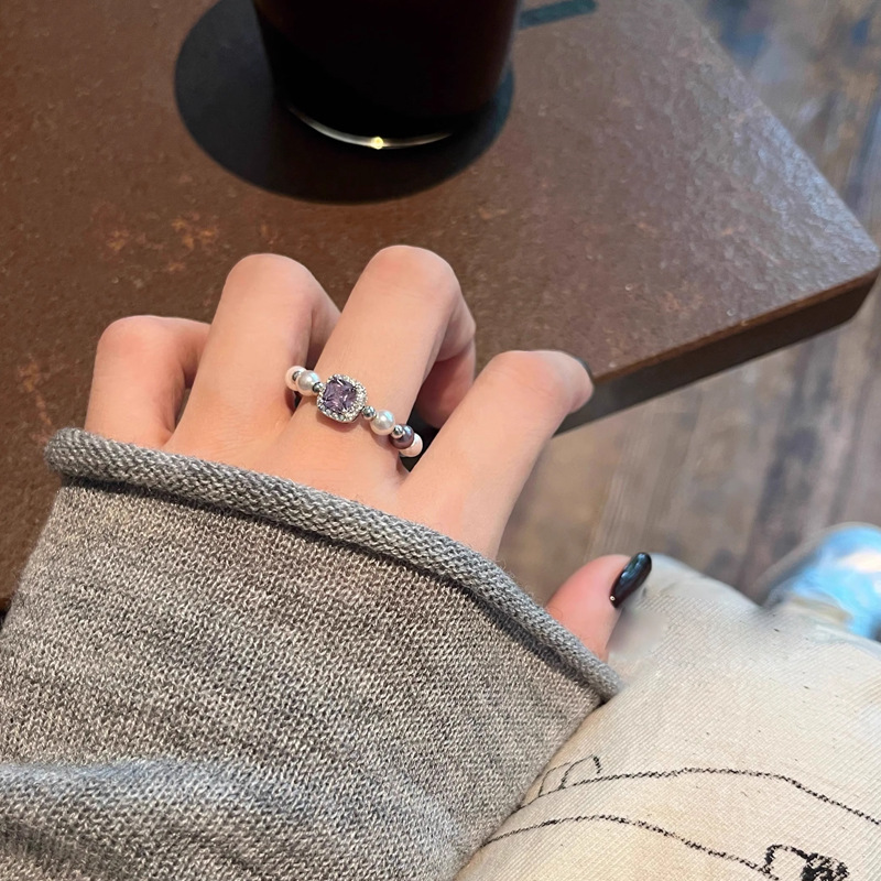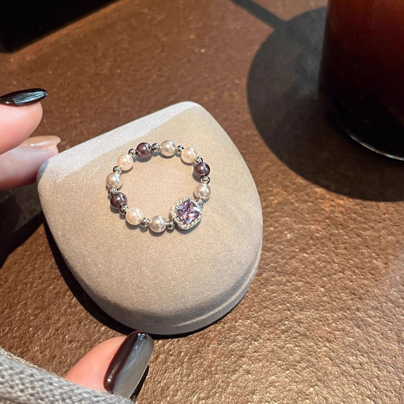 日本gentle motto紫色锆石珍珠戒指女小众设计感串珠弹力绳不