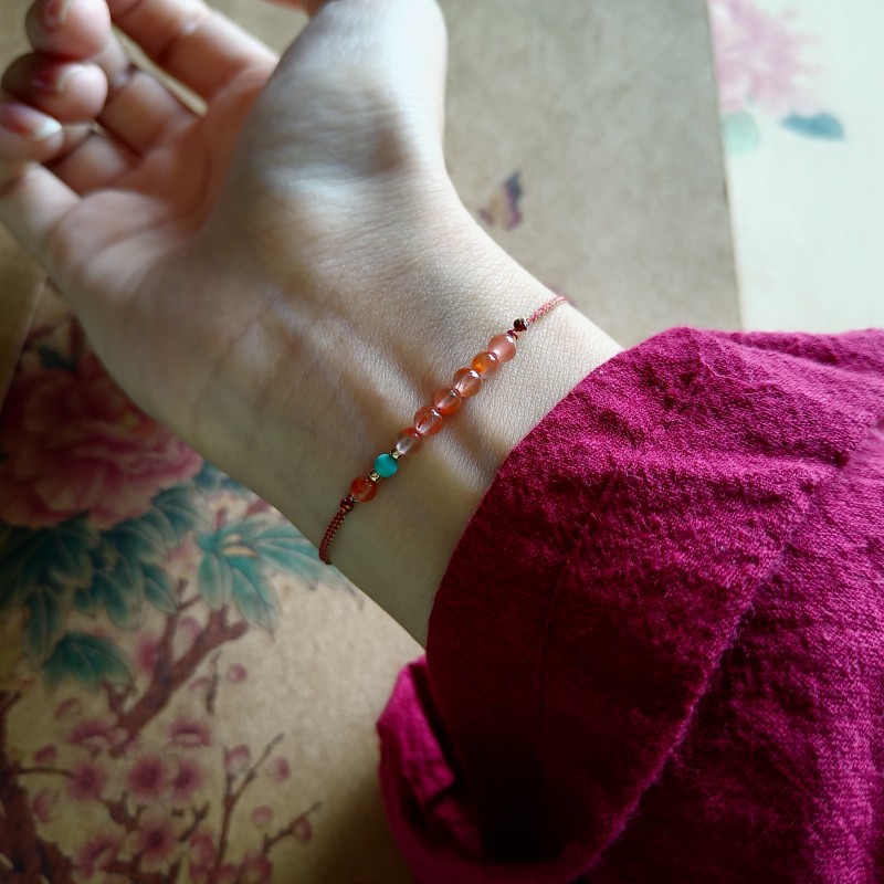 海棠 天然南红玛瑙珠绿松石复古国风撞色细小编织文艺气质女手绳