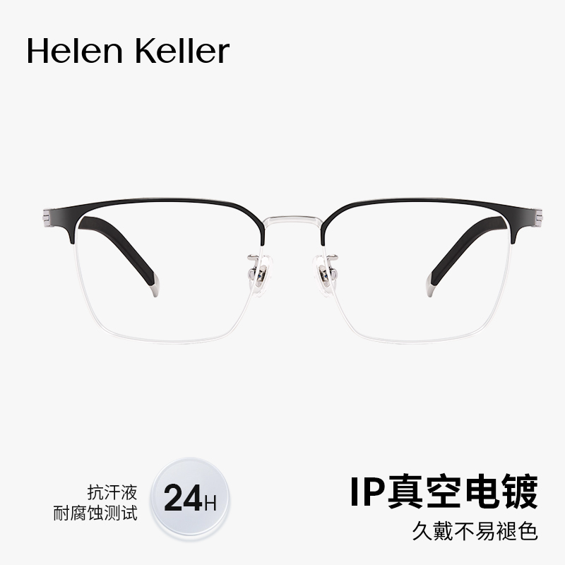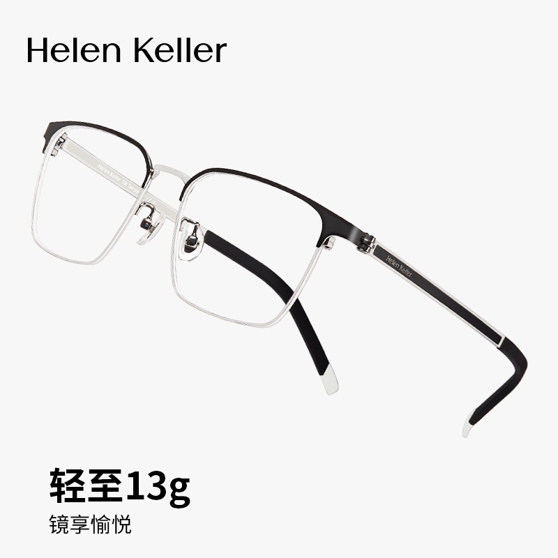 海伦凯勒潮流商务女防蓝光男高弹镜腿眉毛框近视眼镜H89804