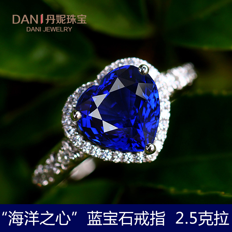 包邮蓝宝石戒指环925纯银镀18K金心形彩色宝石坦桑色彩宝珠宝女款