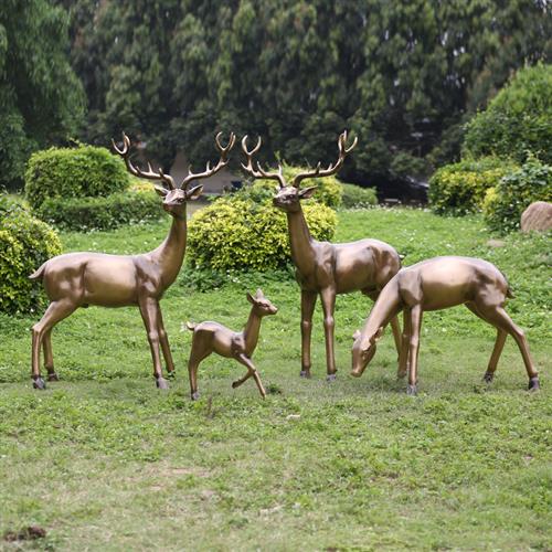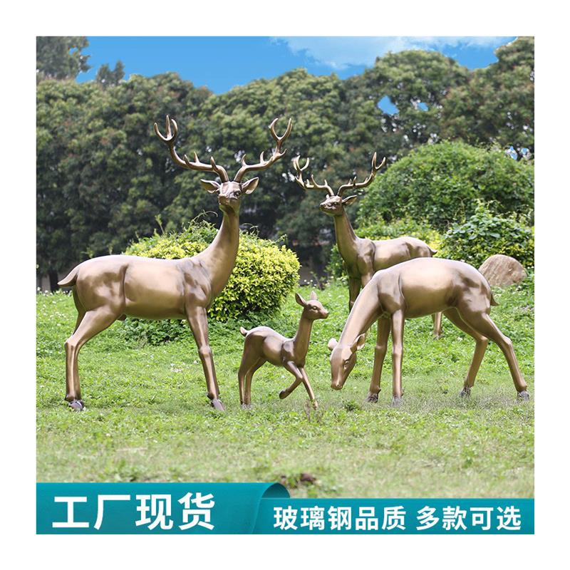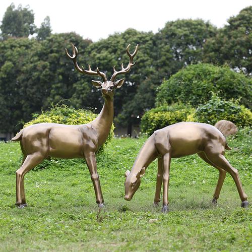 大型摆件户外草坪美陈仿铜鹿雕塑玻璃钢动物园林抽象售楼景观装饰