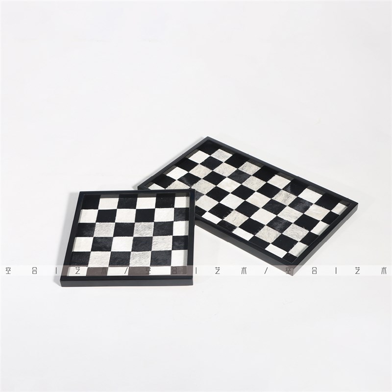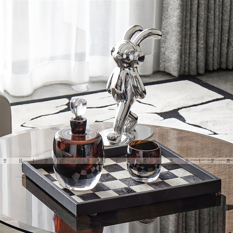空合样板间现g代轻奢客厅黑白马毛棋盘格托盘酒器售楼处茶几搭配