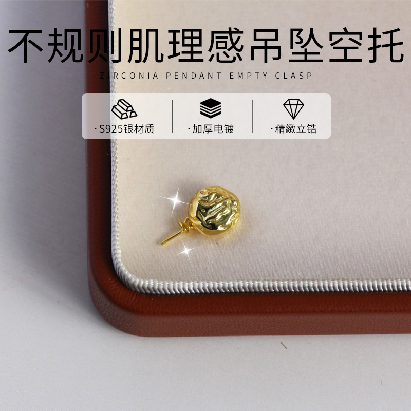 DIY珍珠配件新款S925纯银精致不规则肌理感吊坠空托气质百搭