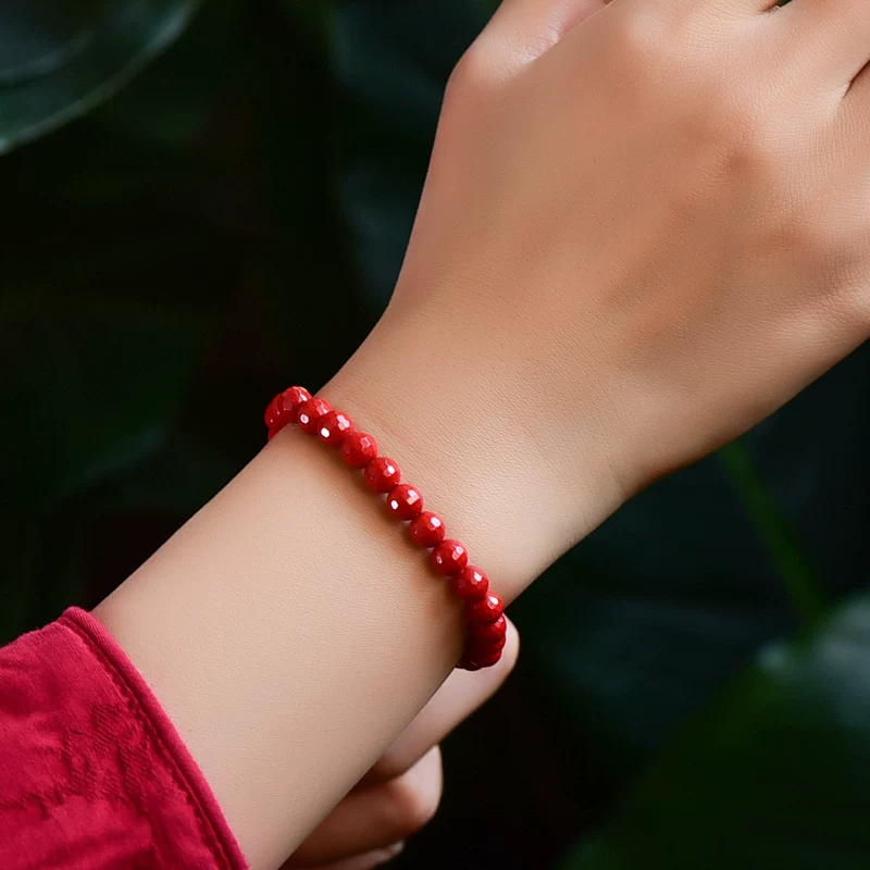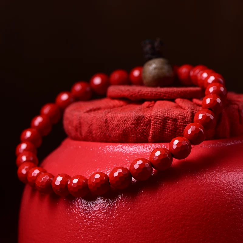 天然高含量朱砂高纯度红砂钻石切割面手串手链正品男女款