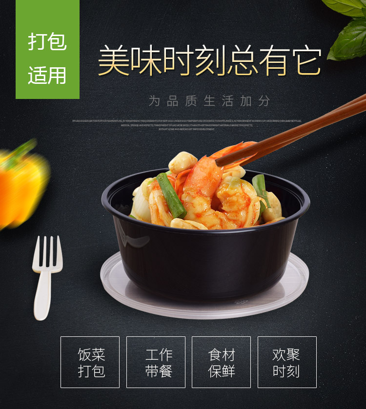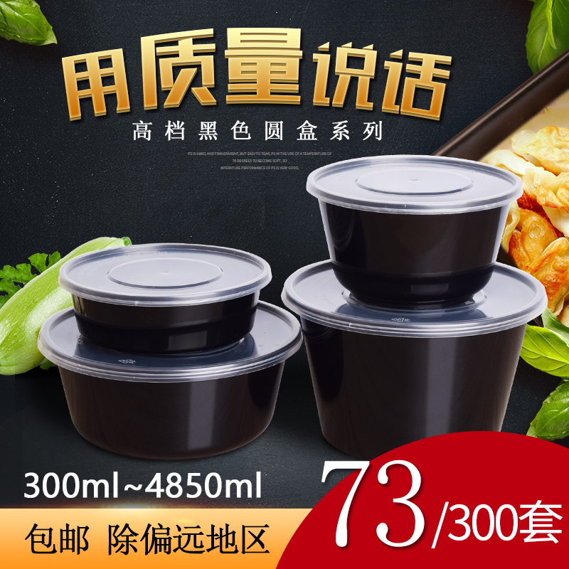 高档加厚圆形1000ML一次性快餐打包盒粥汤碗黑色塑料外卖饭盒带盖