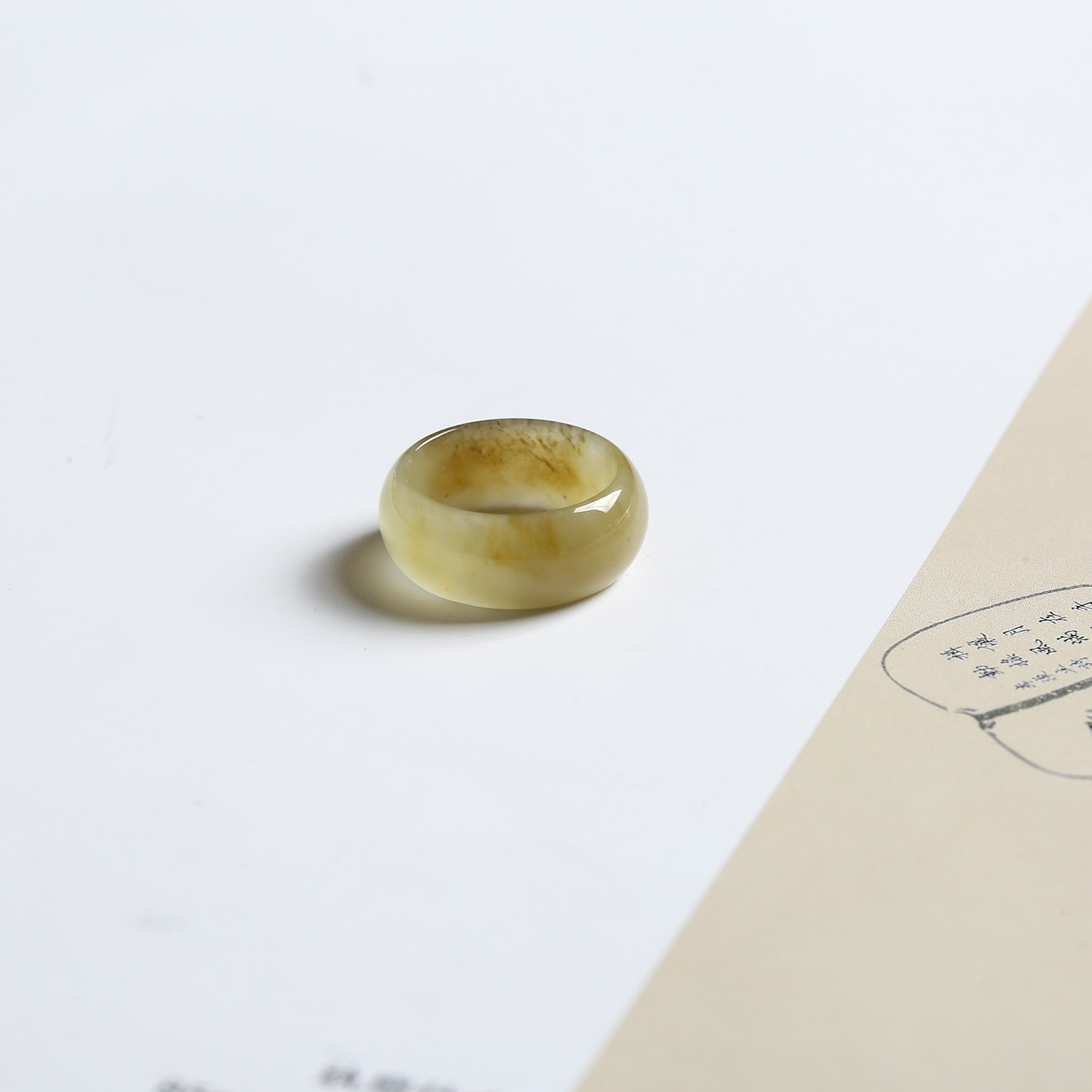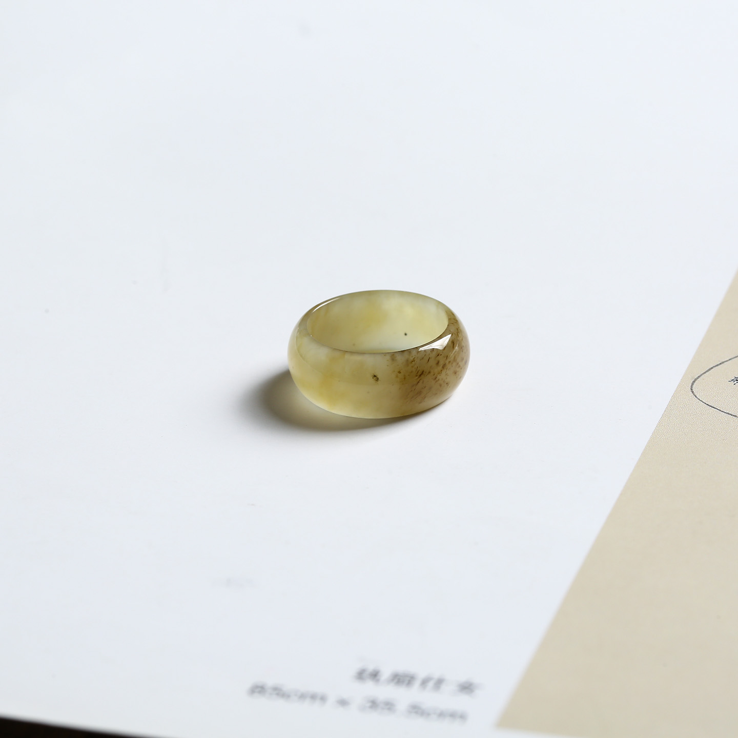 12号戒指 新疆和田玉糖料糖玉中宽圆弧泥鳅背素圈指环 625