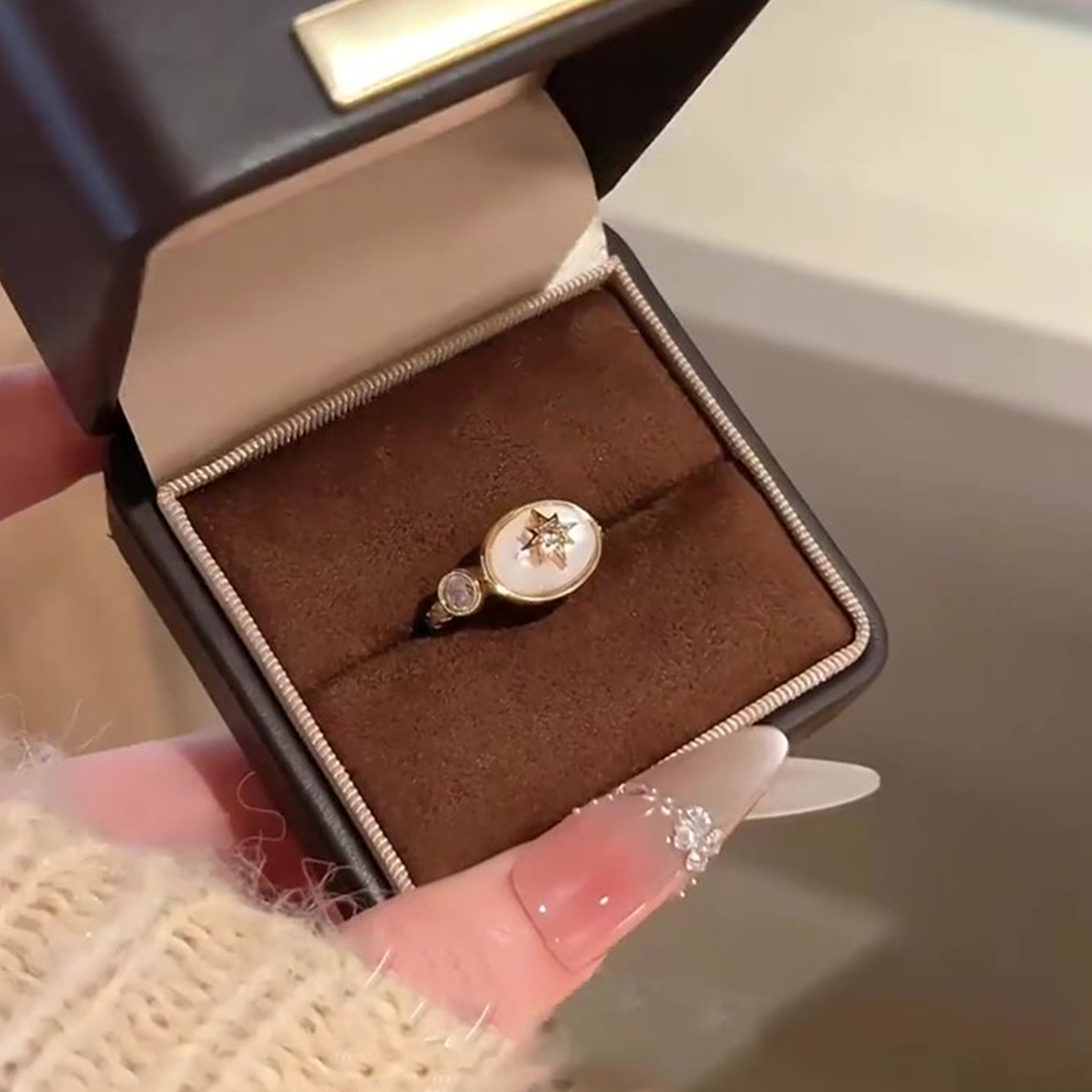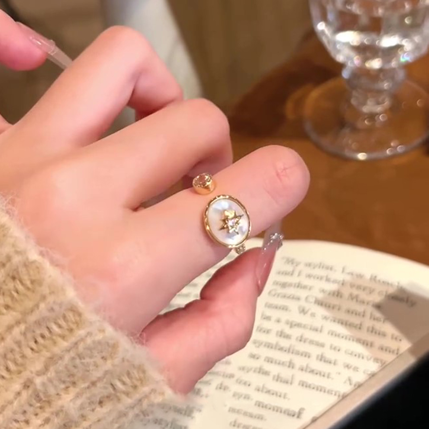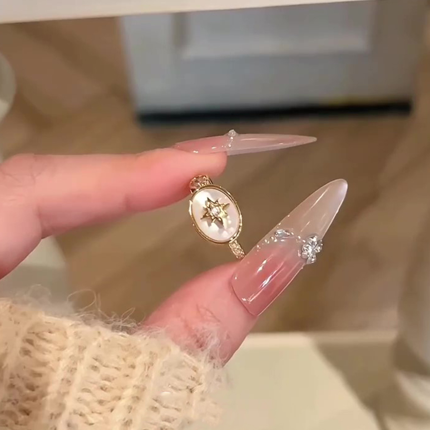 法式超闪泡泡钻贝母星芒戒指女轻奢高级感宫廷风开口可调节食指戒