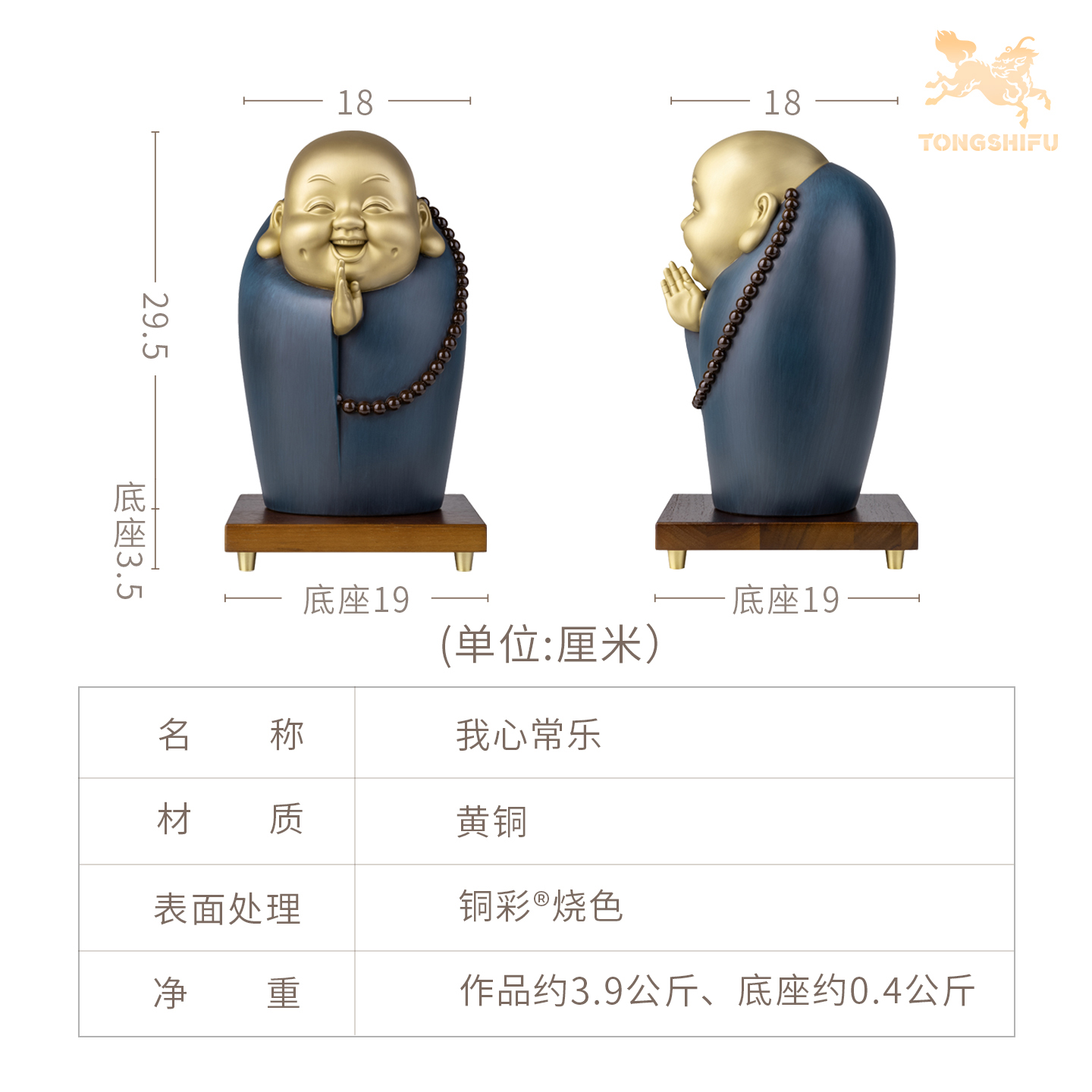 铜师傅《我心常乐》客厅桌面佛像铜摆件 家居装饰工艺品