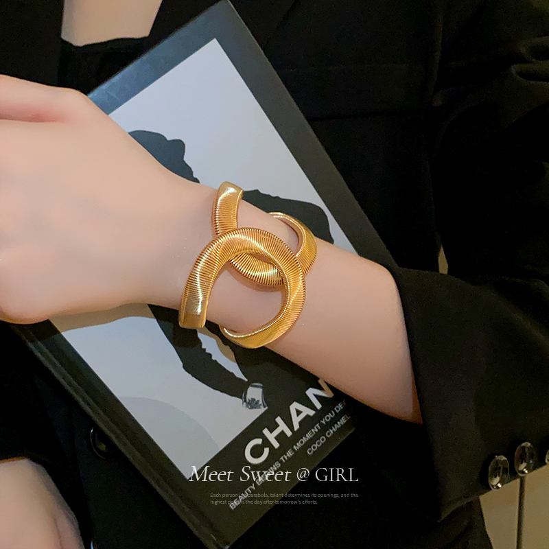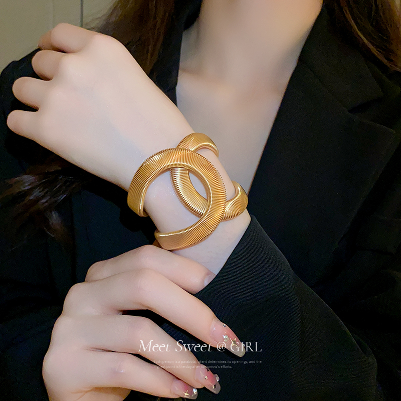 欧美蛇形金色开口手镯轻奢小众设计感精致夸张镯子女个性手环手饰