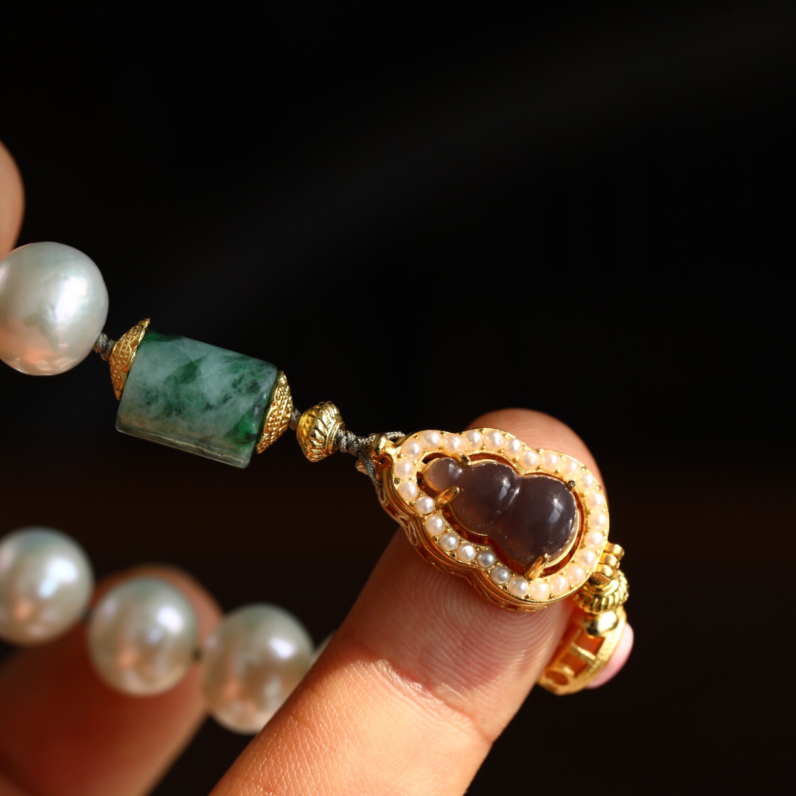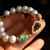 珠光宝气天然淡水珍珠手链搭配天然翡翠A货桶珠和田玉配饰胭脂螺