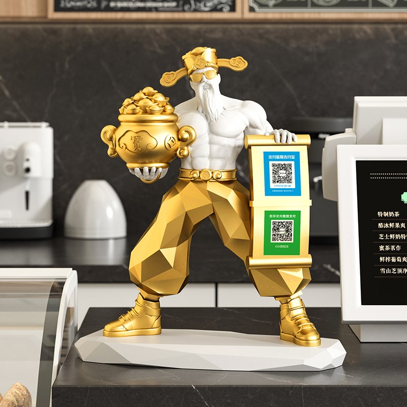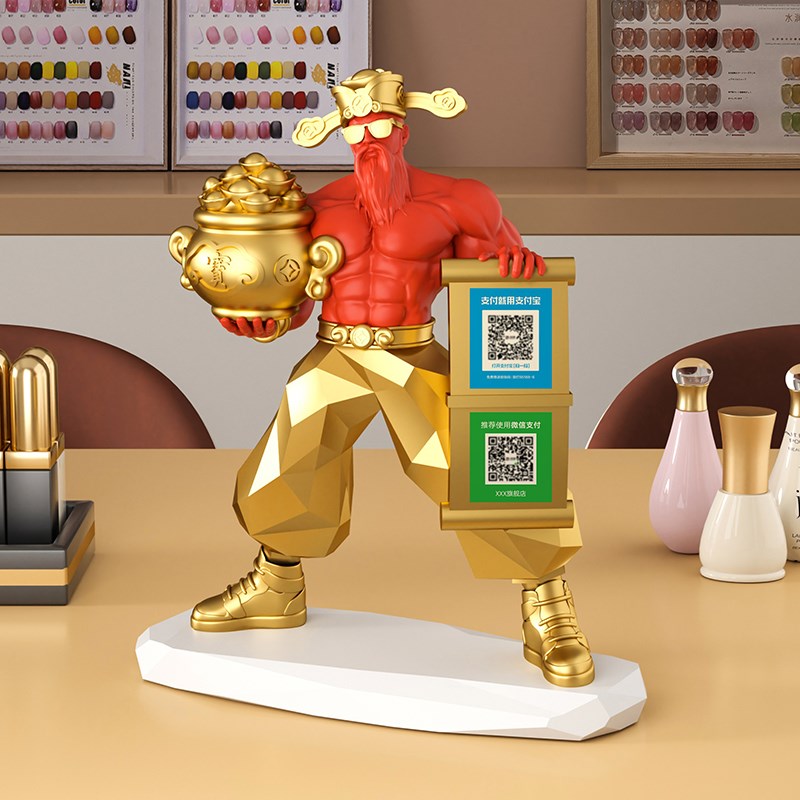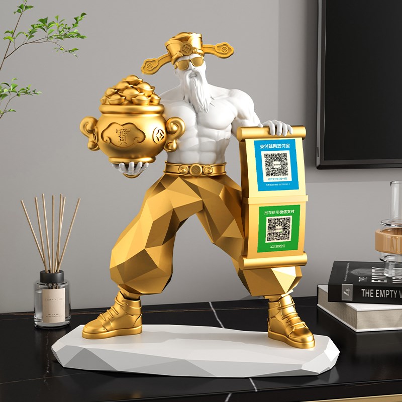 肌肉财神爷客厅招财扫二维码摆件家用办公室前台乔迁店铺开业礼物