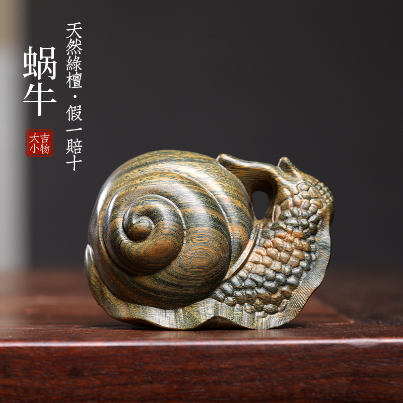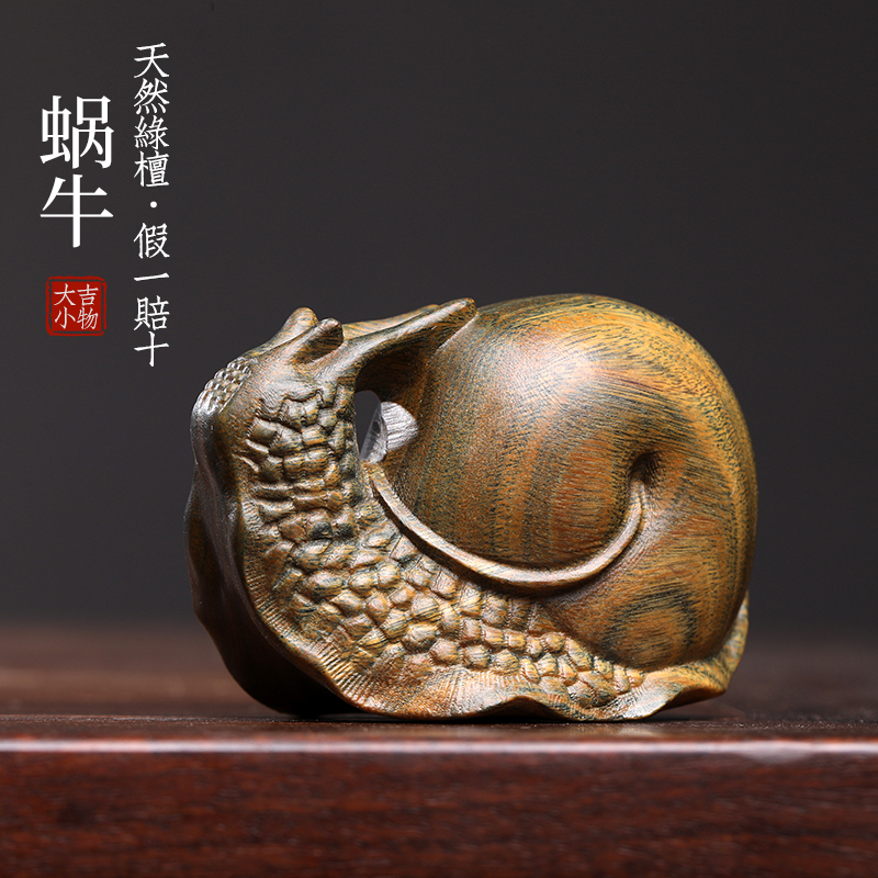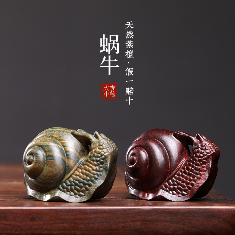 天然绿檀木紫檀木桌面小摆件奔跑蜗牛创意实木可爱木雕不生气摆件