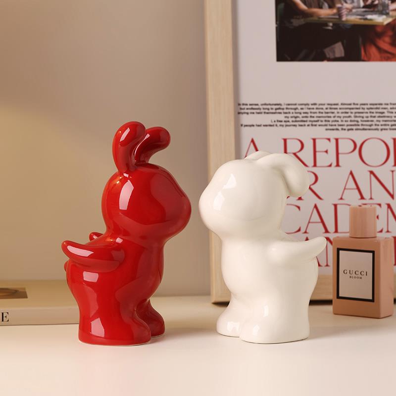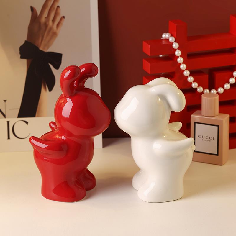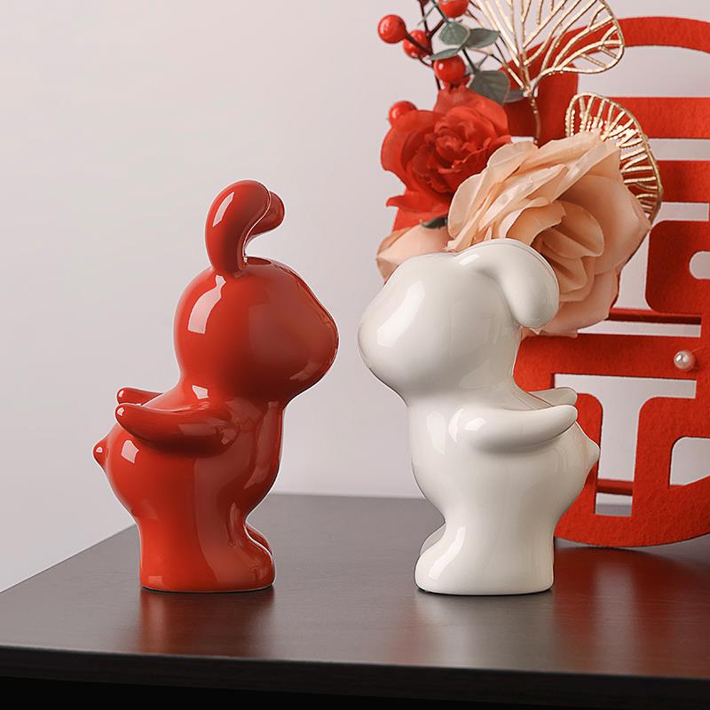 结婚礼物送新人情侣兔子陶瓷摆件家居饰品创意订婚新婚礼品送闺蜜