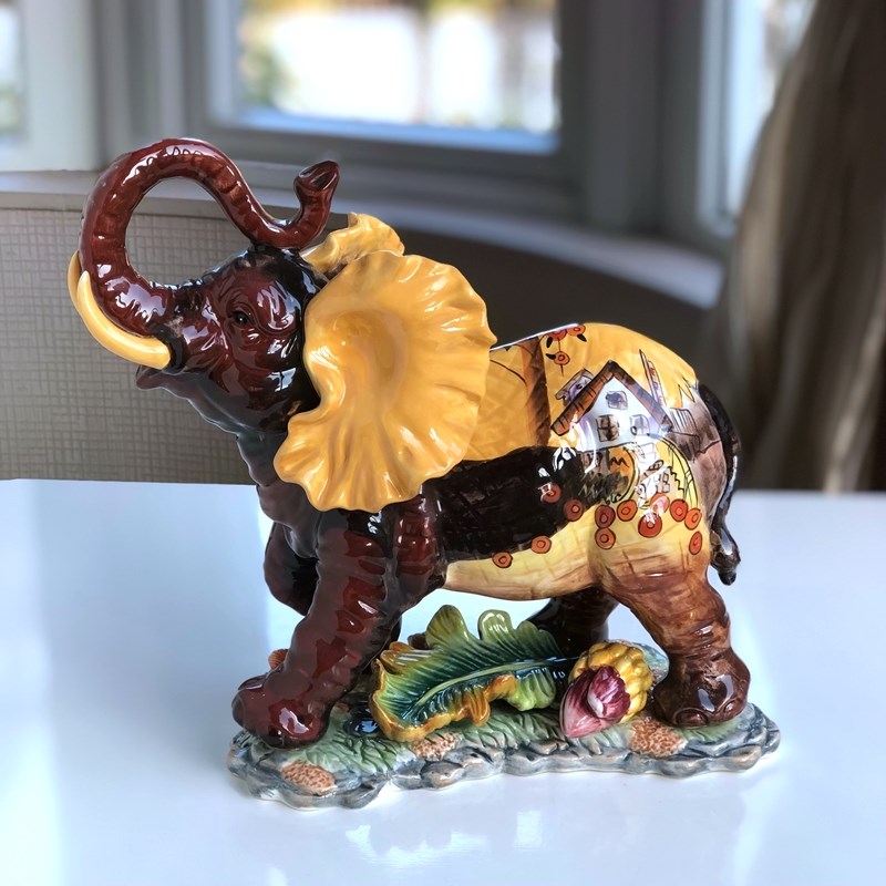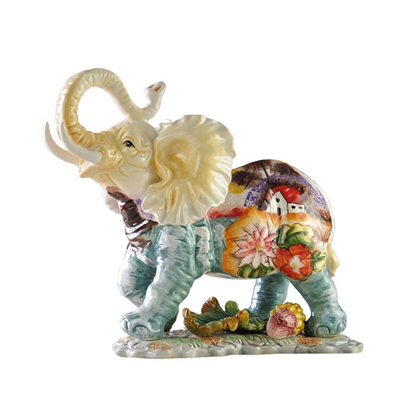 奢华手绘陶瓷大象摆件欧式家居装饰品门厅电视柜桌面摆设开业礼品