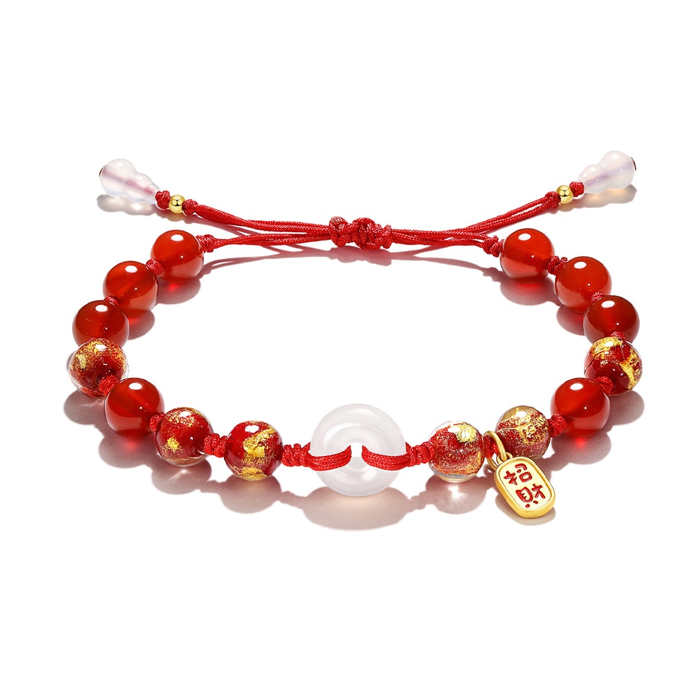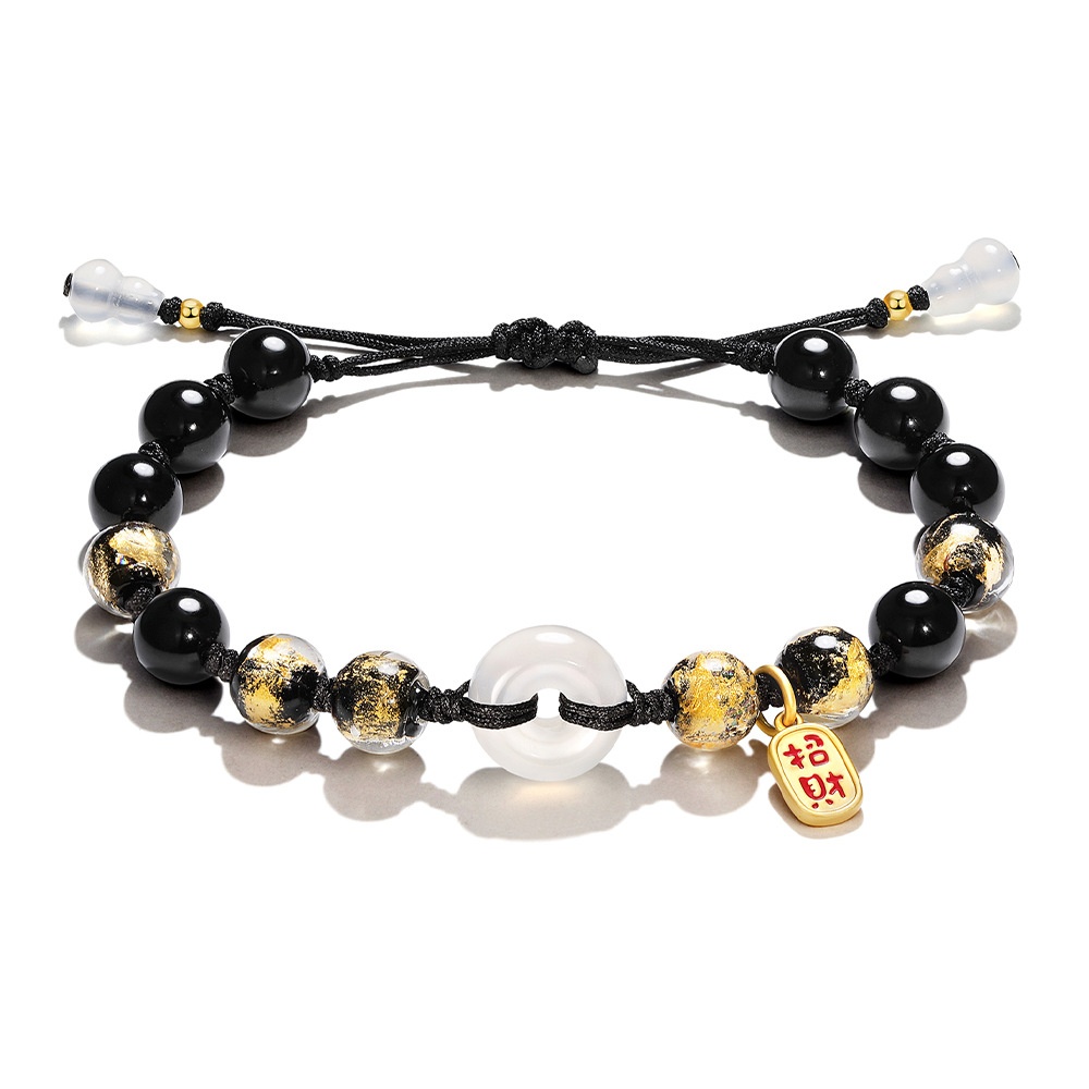 新中式金箔琉璃手工编织情侣手链女吉祥纳福招财情侣手绳手串