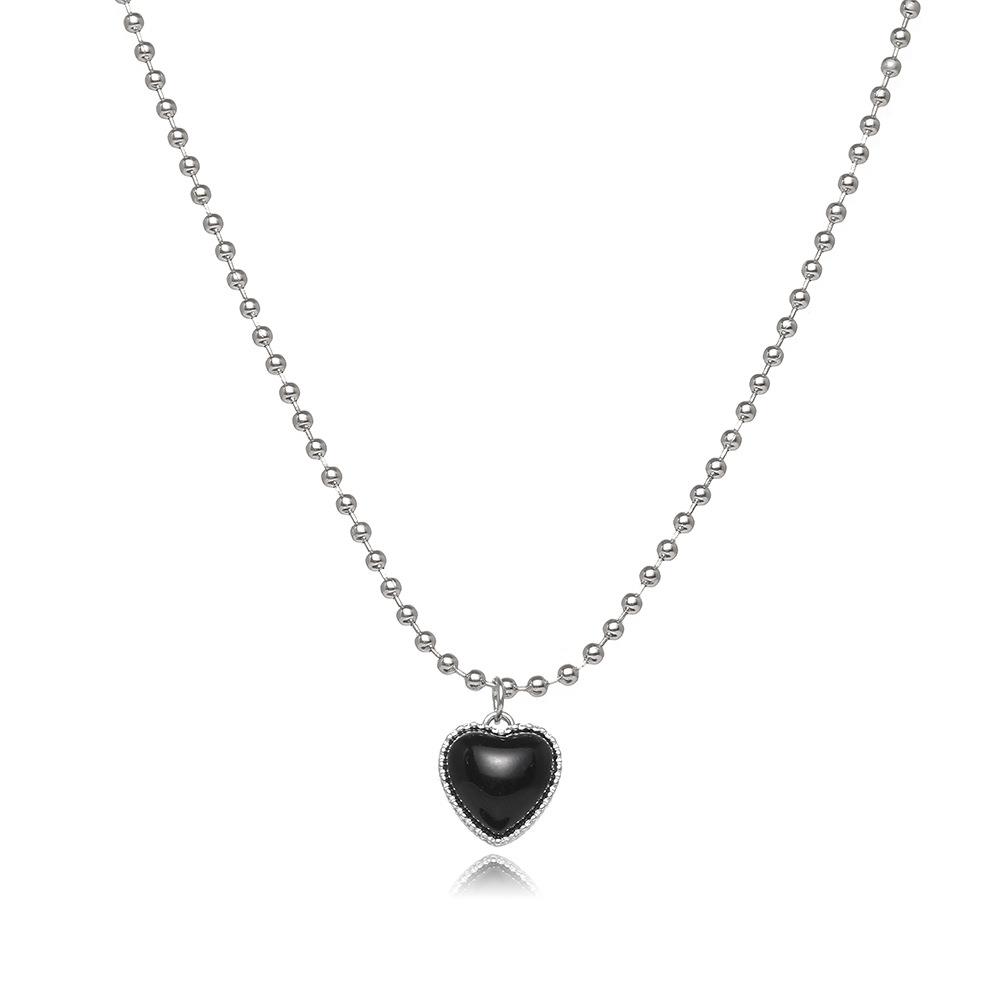 Black Love Pendant necklace women粗炼条项炼黑色爱心吊坠