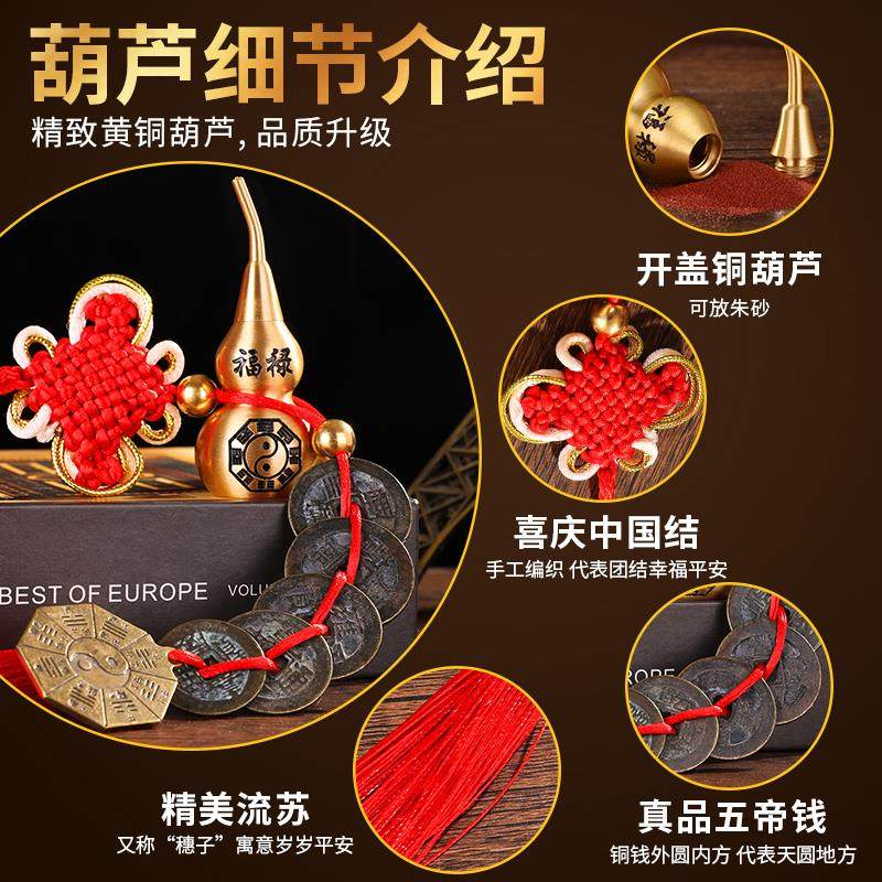 真品五帝钱铜葫芦挂件门对门大门卧室吉祥结挂件化解入户门中国风
