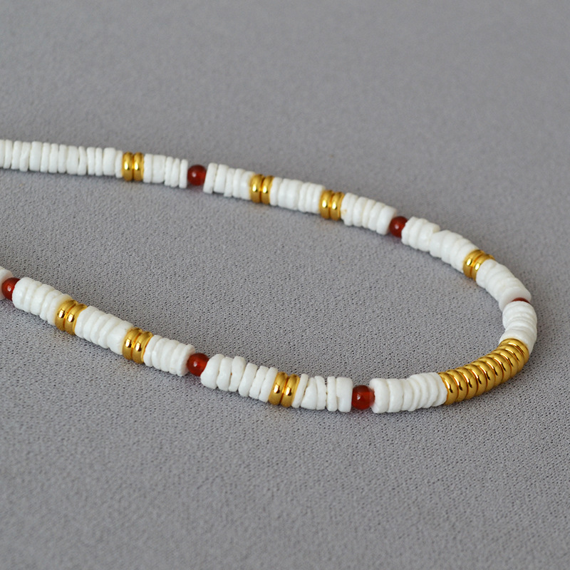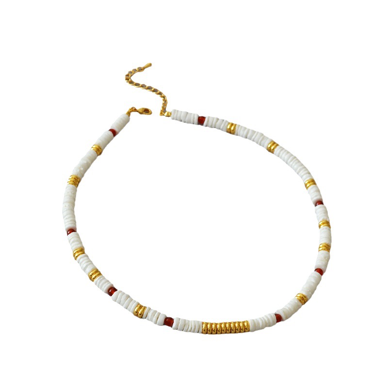 欧美小众复古文艺白色贝壳红色玛瑙手工串珠气质夸张项链锁骨链女