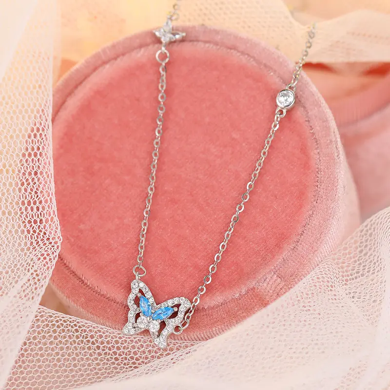 榕树下s925银简约蓝色项链ins轻奢小众设计感ins气质搭锁骨链