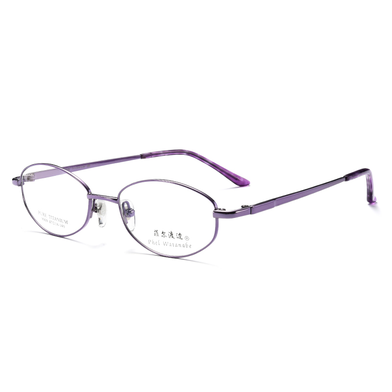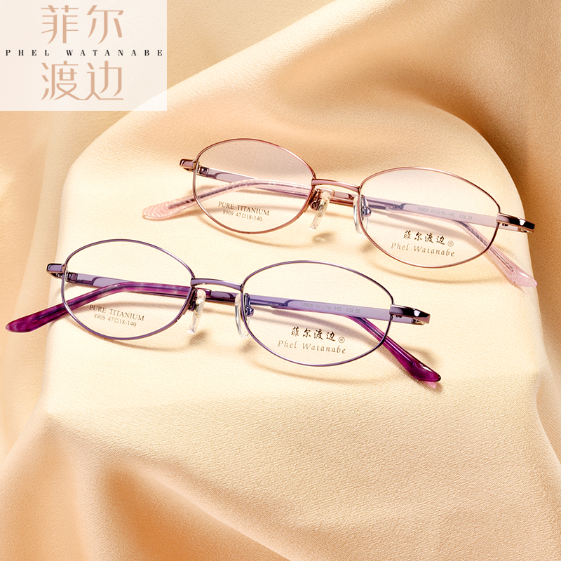 菲尔渡边超轻钛架全框眼镜架女椭圆镜框可配高度近视老花眼睛8909