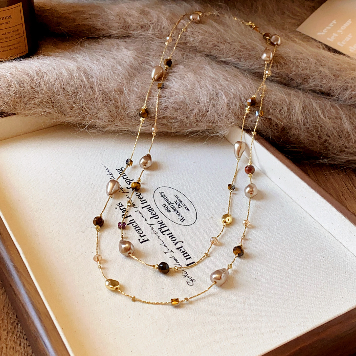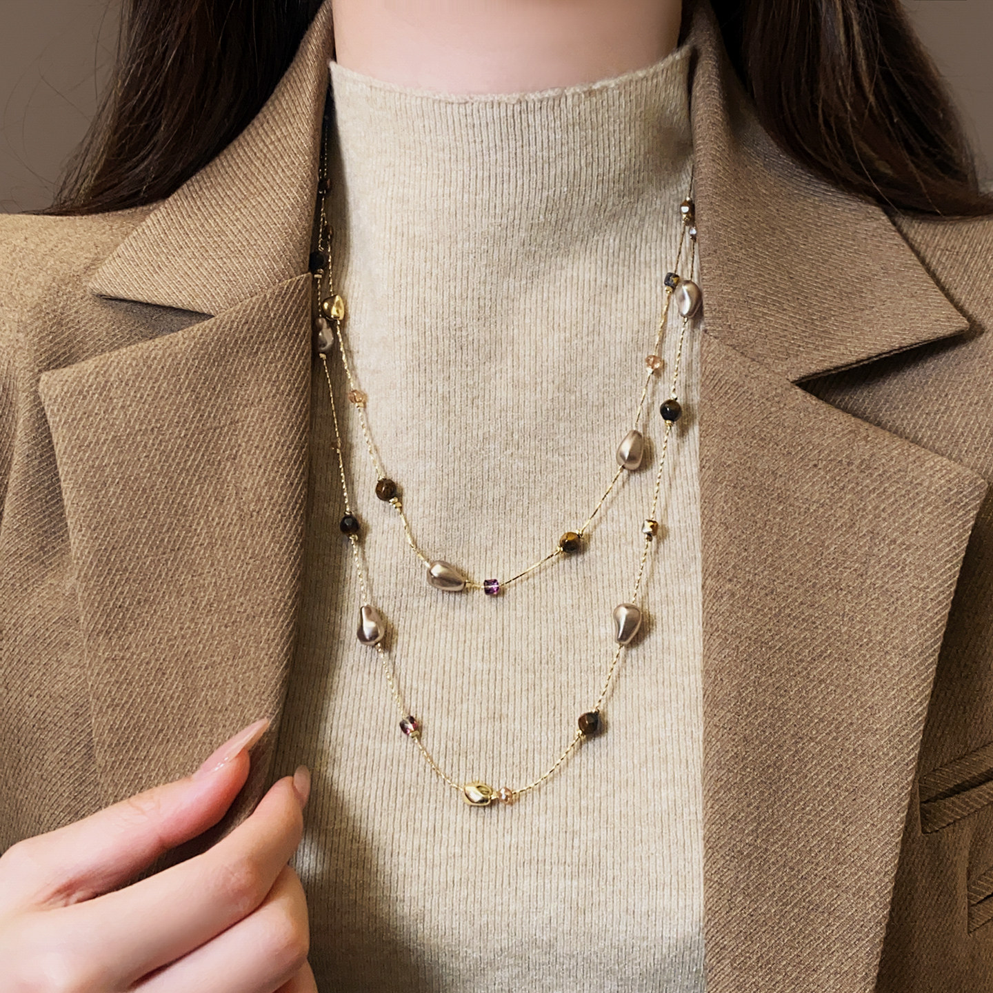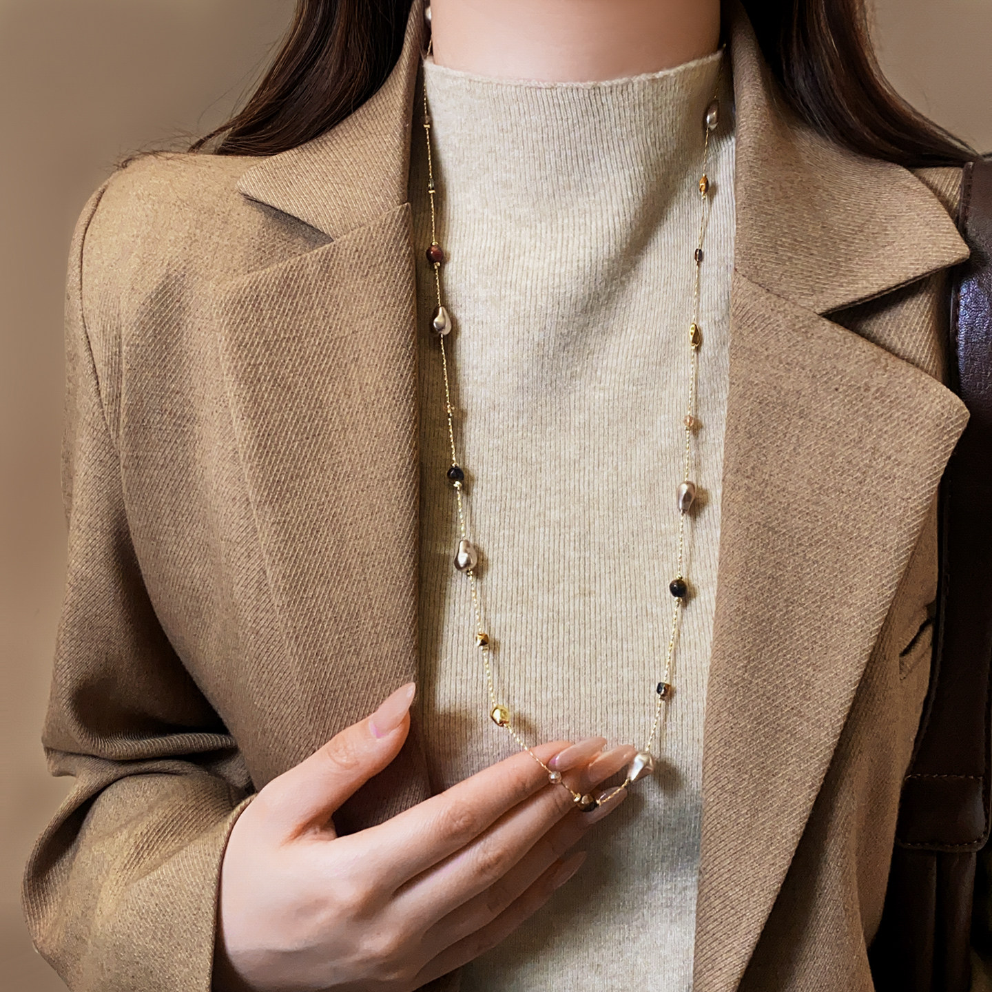 古里雅双层叠戴虎眼石串珠长项链女秋冬毛衣链大气高档高级感配饰