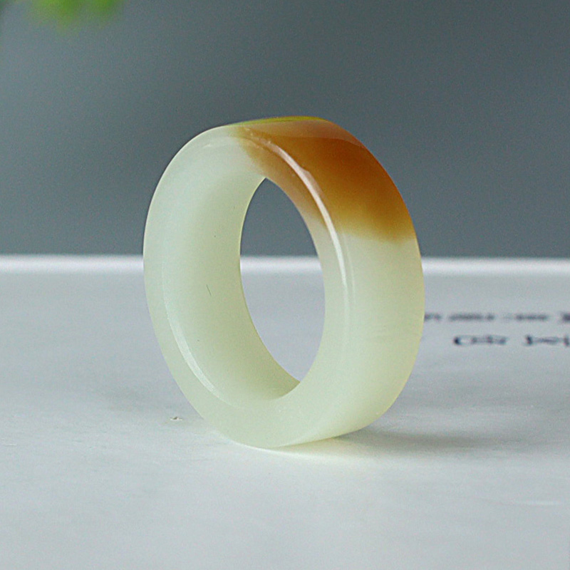 玉友和田玉戒指男女款糖青白玉素面指环扳指圆满富贵玉手饰附证书