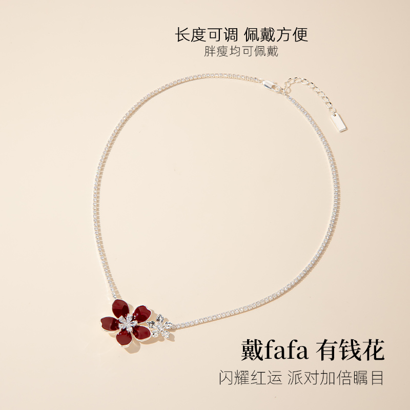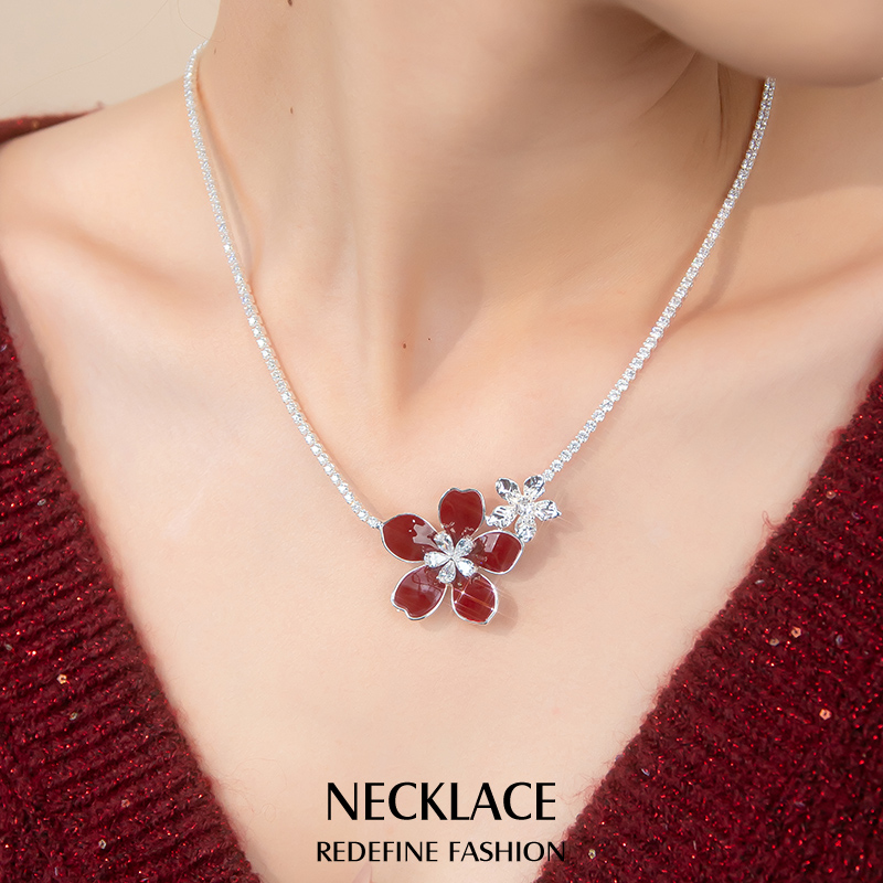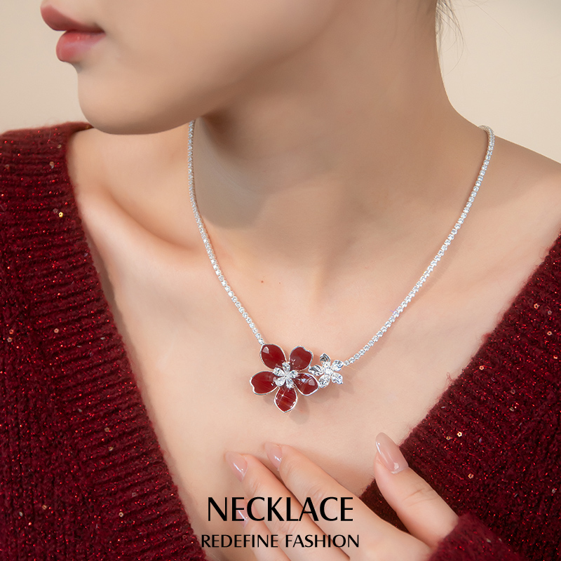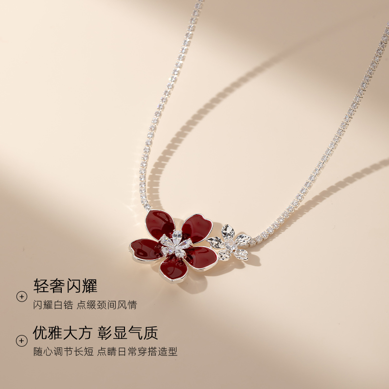 红色花朵项链女款2025新款高级感轻奢小众饰品吊坠生日礼物女生