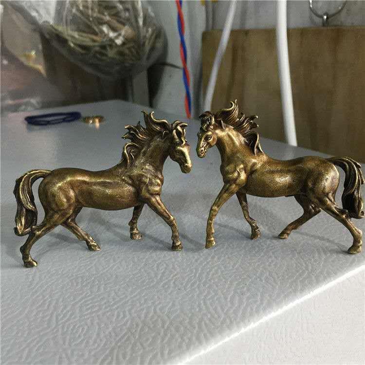 黄铜做旧骏马摆件马到成功生肖马转运摆饰茶宠文玩收藏老铜器工艺