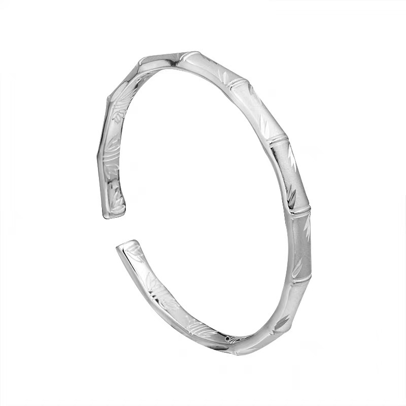 镯子新款手环礼物手镯女古法开口小众竹报平安银9999竹节足纯银