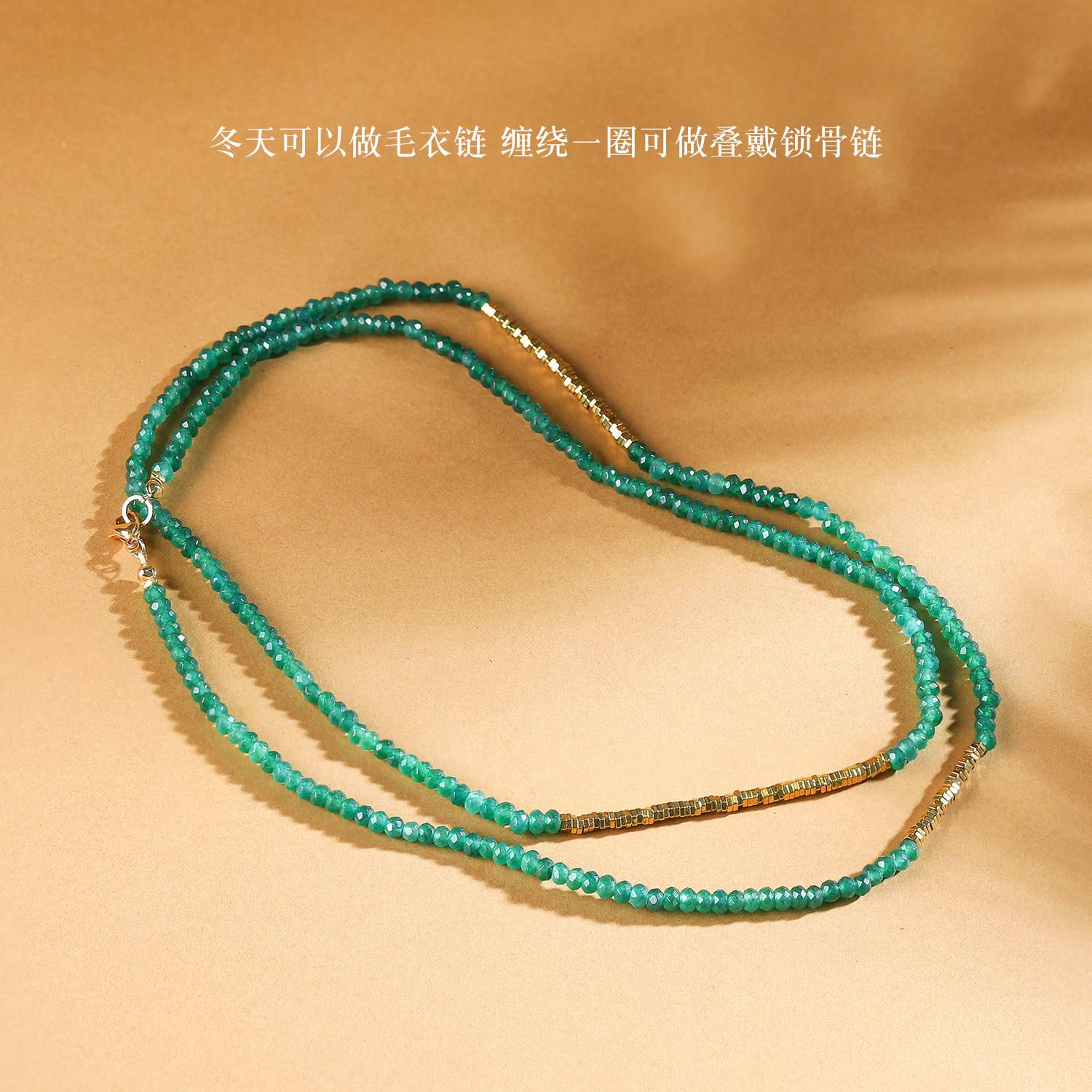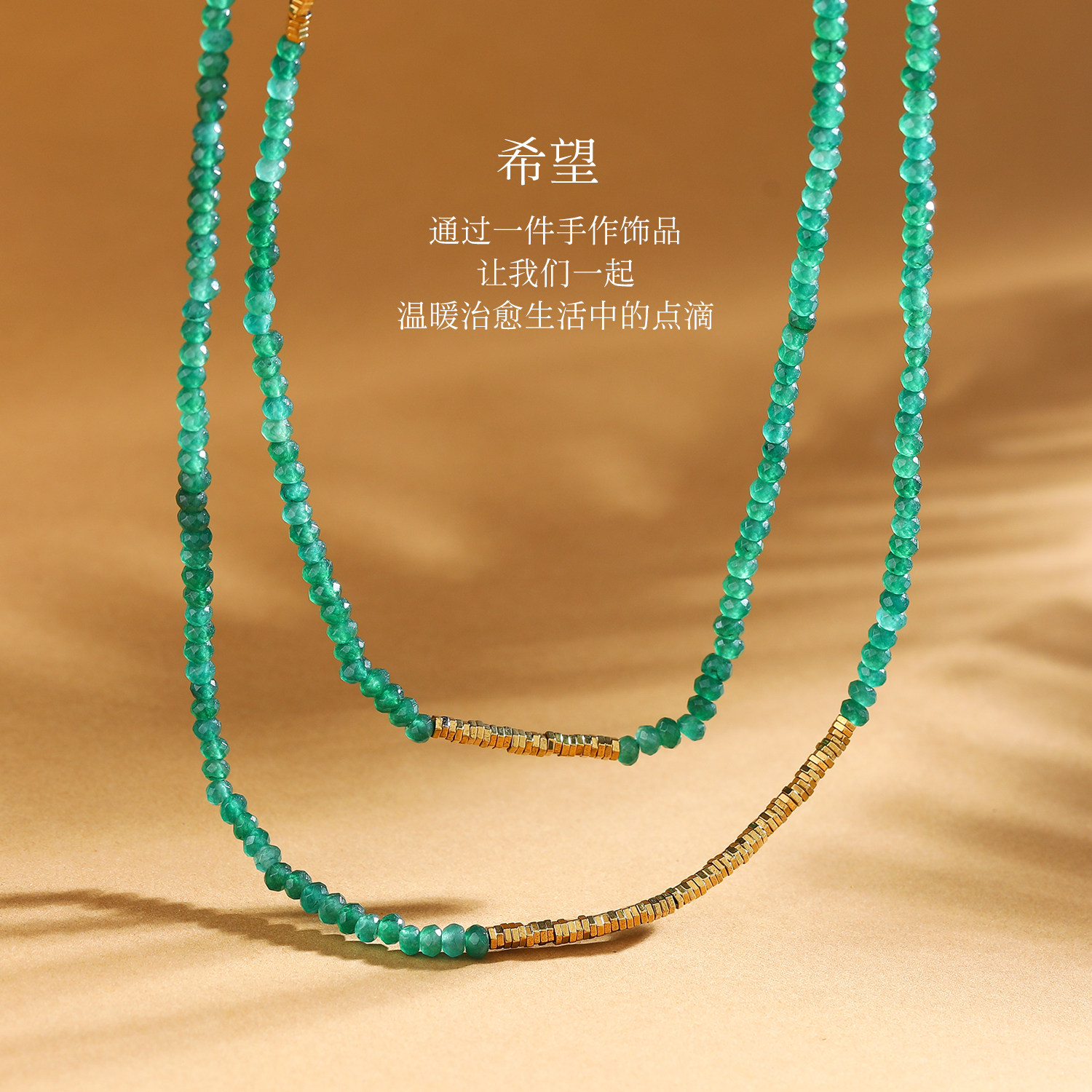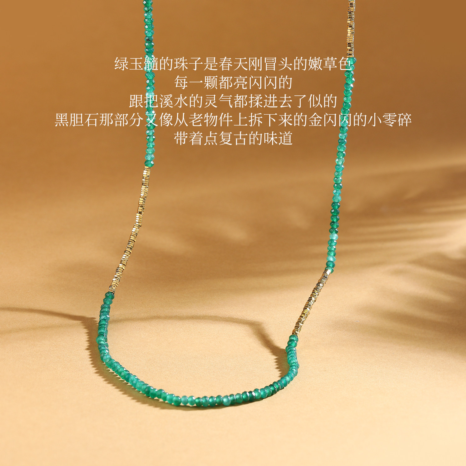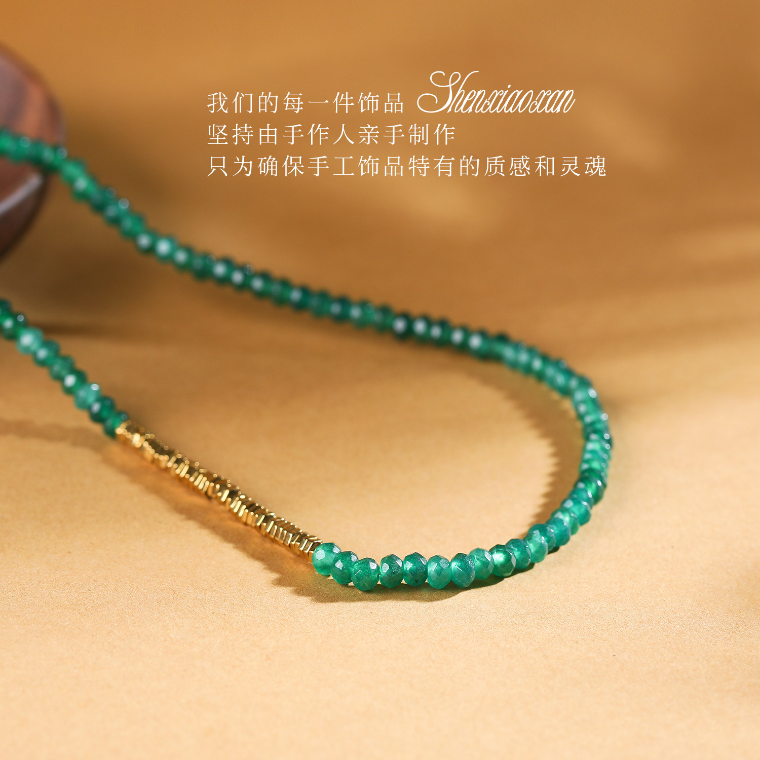 天然翠金串珠项链女手工diy绿玉髓复古设计师款锁骨链小众个性