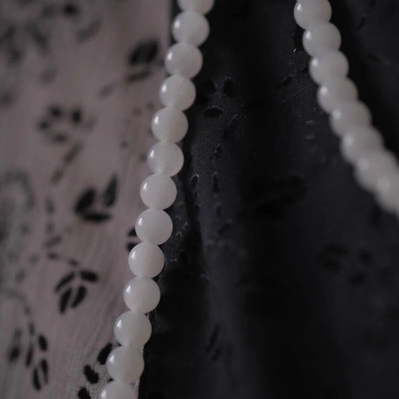 天然和田白玉串珠项链女款新中式圆珠长款毛衣链国风羊脂白玉叠戴