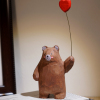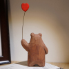 棕熊举爱心手工木雕小摆件可爱治愈系办公桌面摆放装饰品礼物女生