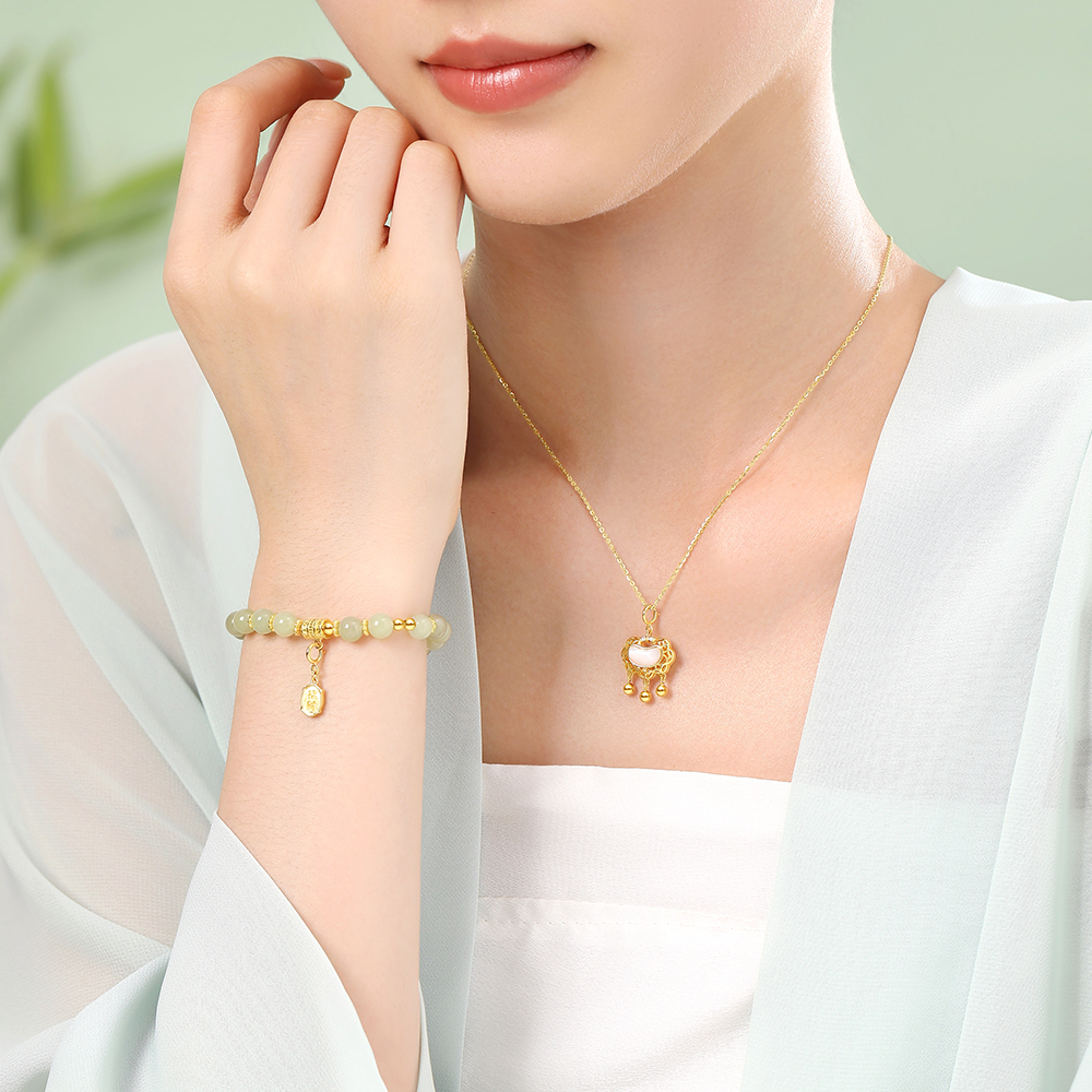 周大生福运玉锁和田玉手串女款纯银气质国风新中式生日礼物送女友