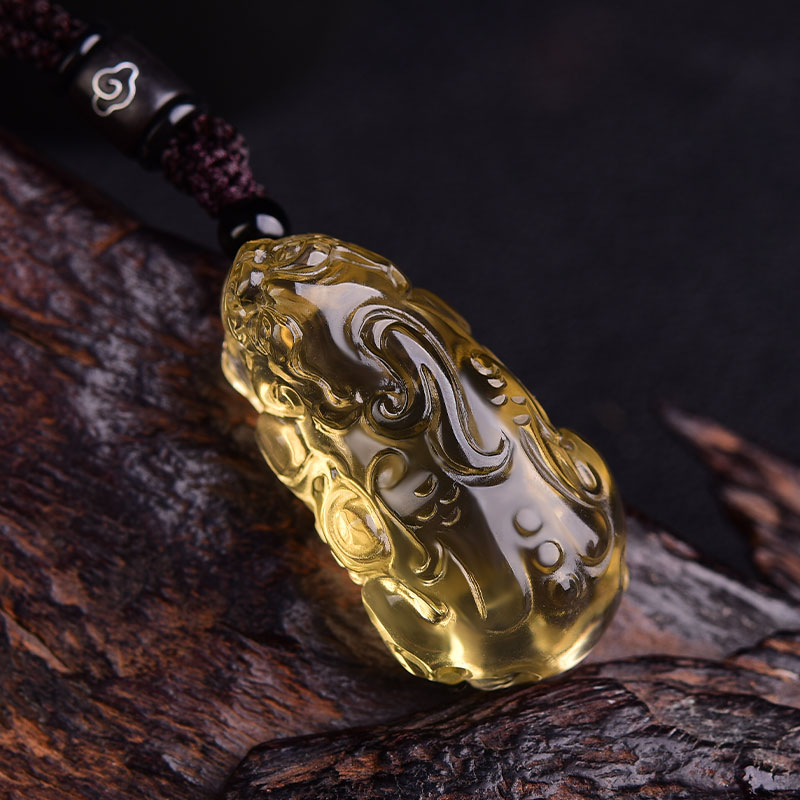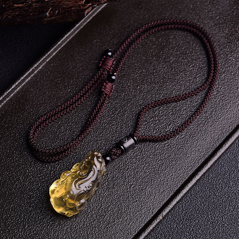 天然黄水晶貔貅吊坠男女情侣霸王貔貅水晶皮丘饰品挂件节日礼物