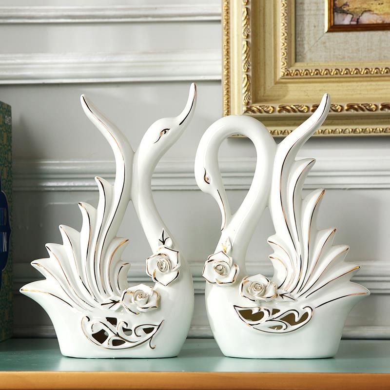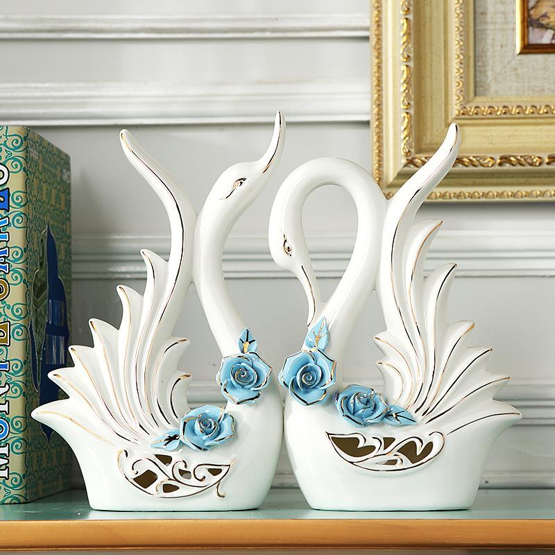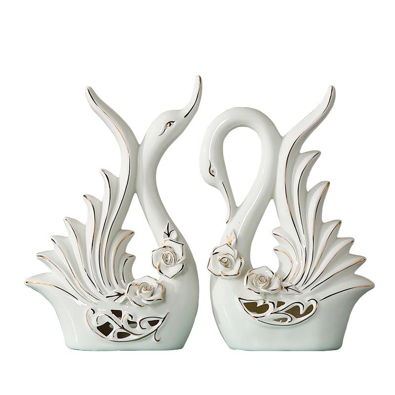 创意情侣天鹅结婚礼物摆件家居装饰品陶瓷工艺品时尚新房婚房摆设